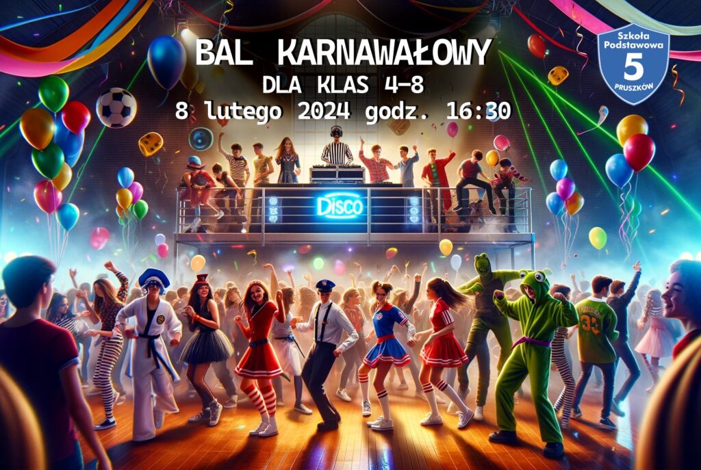 Samorząd Uczniowski zaprasza klasy 4-8 na Szkolny Bal Karnawałowy, 8 lutego 2024 r. o godz. 16:30, w Tłusty Czwartek!