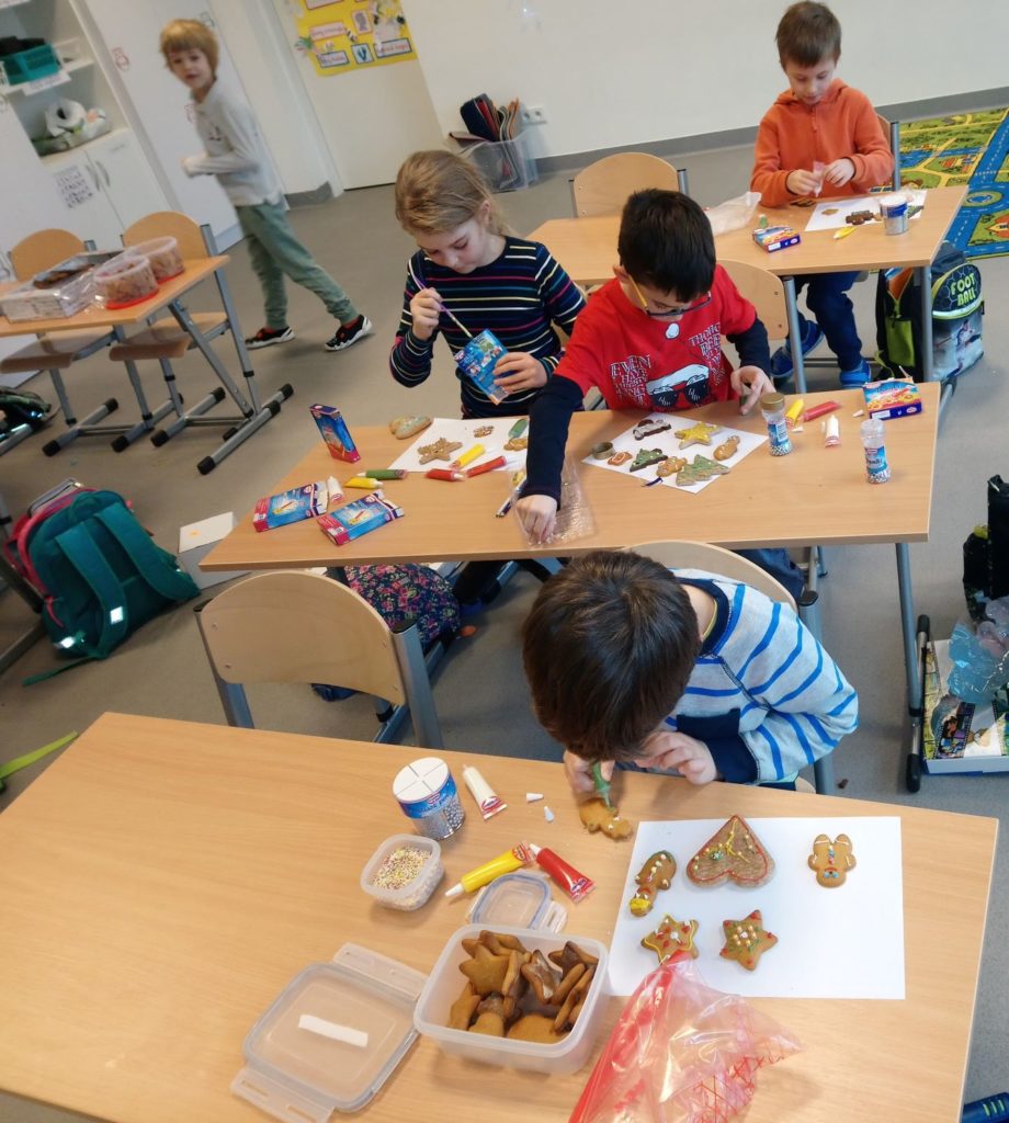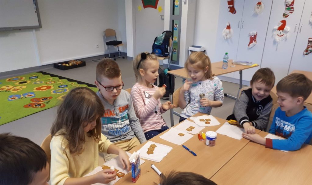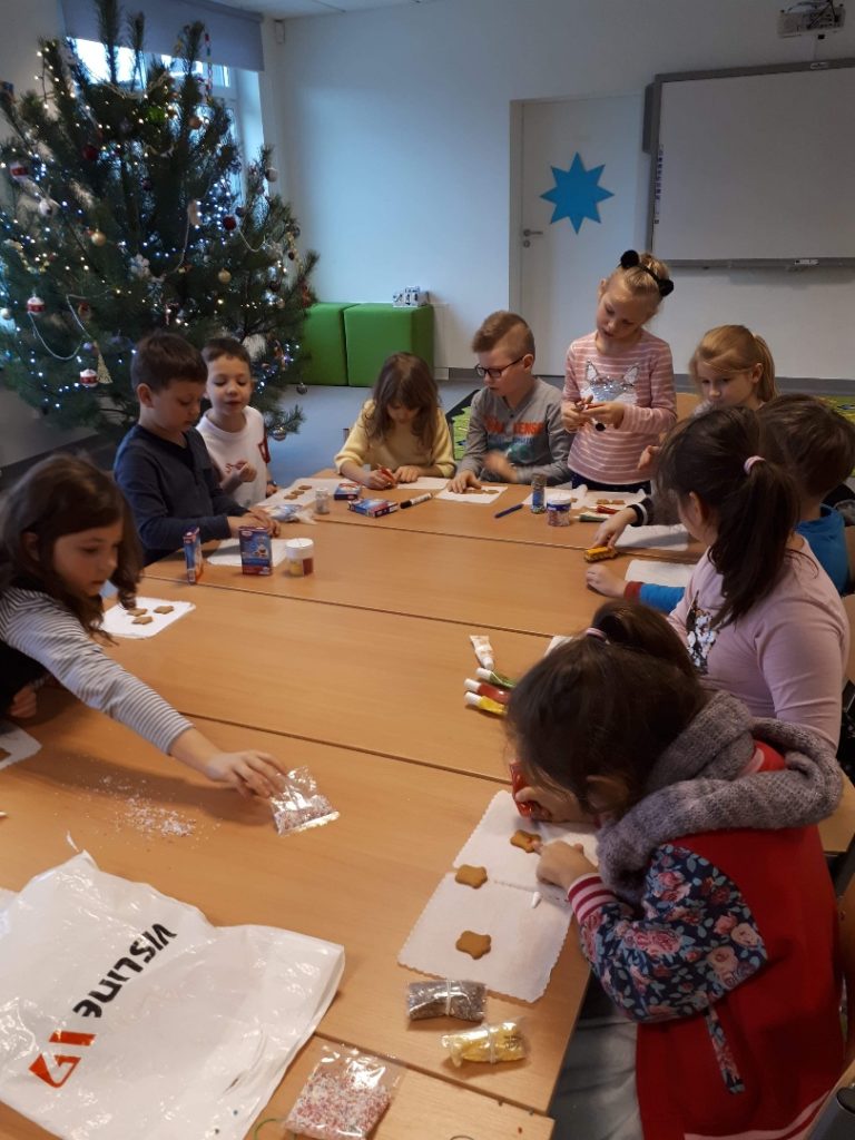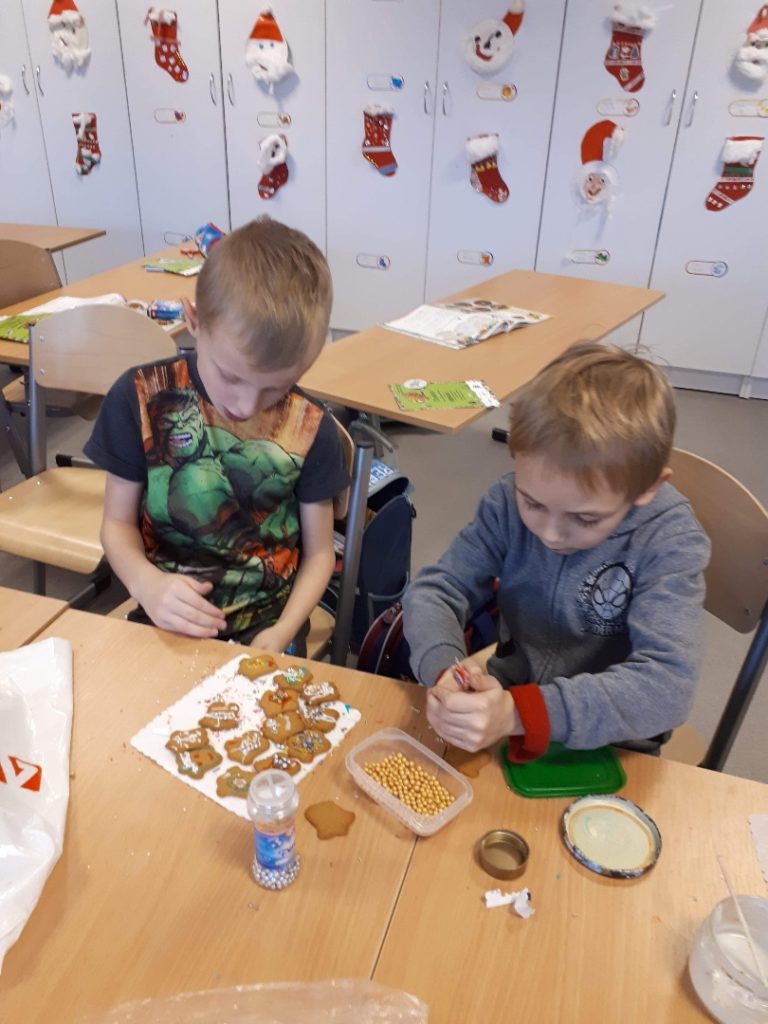 Przedświąteczne dekorowanie pierników w klasach pierwszych.