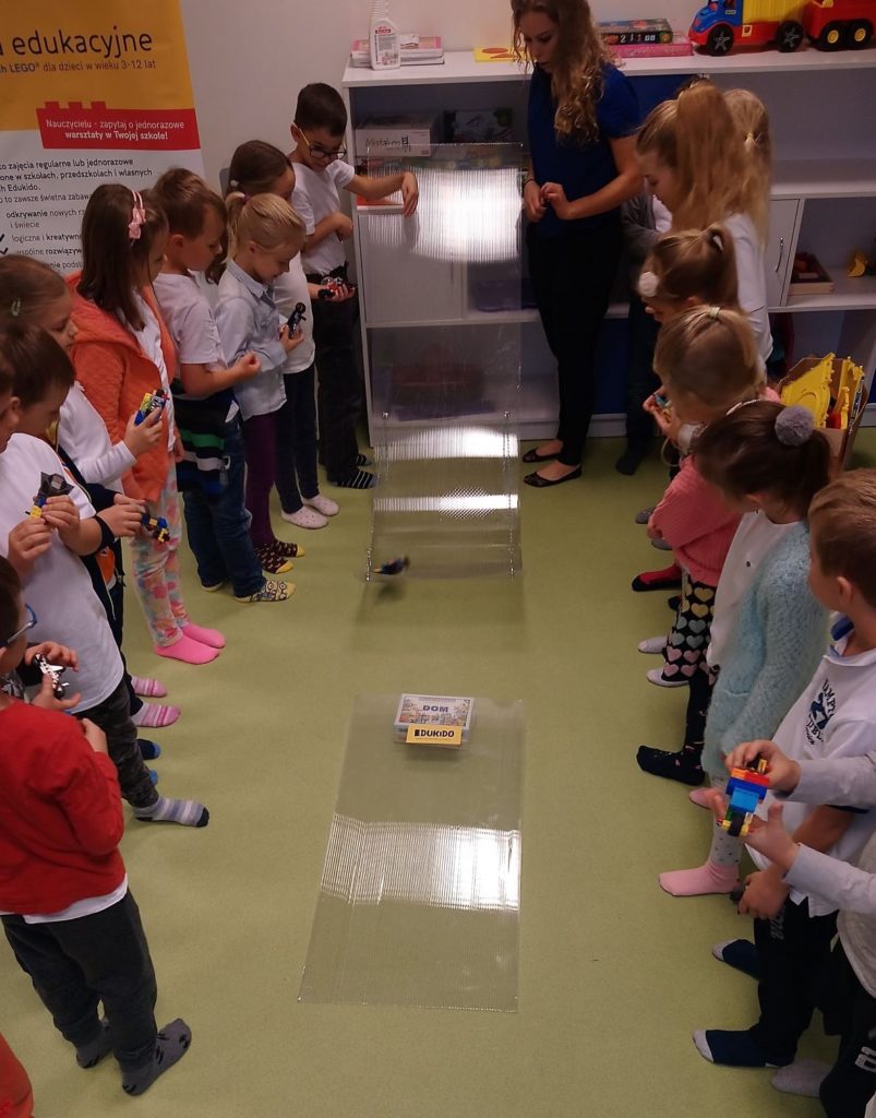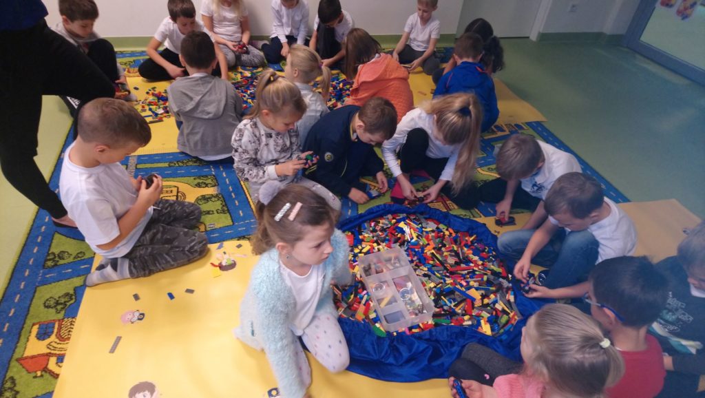 W piątek 16 listopada 2018 r. klasy 1a, 1b, 1c, 1d oraz 0c uczestniczyły w warsztatach Edukido, czyli „Nauka poprzez zabawę”- zajęcia z klockami Lego. Budowały swoje pojazdy, utrwalały pojęcie symetrii oraz sprawdzały, czy pojazdy te przetrwają, gdy spuści się je z rampy.