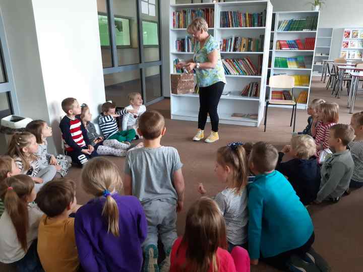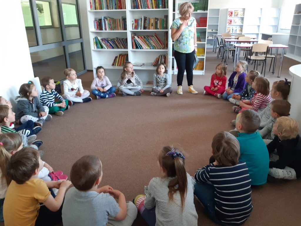 W dniu 8 maja 2019 roku naszą bibliotekę odwiedzili goście z Przedszkola Miejskiego nr 1 w Pruszkowie. Dzieci wysłuchały bajki pt. „Stoliczku nakryj się” braci Grimm. Celem odwiedzin było zachęcenie dzieci do czytania bajek, które swoim przekazem w sposób szczególny pomagają stać się lepszym człowiekiem. Spotkanie miało rozbudzić zainteresowania czytelnicze przedszkolaków oraz propagować czytanie jako przyjemności i sposobu spędzania wolnego czasu. Dzieci pod opieką Pani wychowawczyni wykonają prace plastyczne, które będą wyeksponowane w bibliotece szkoły.