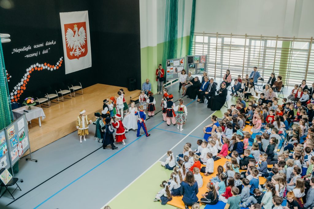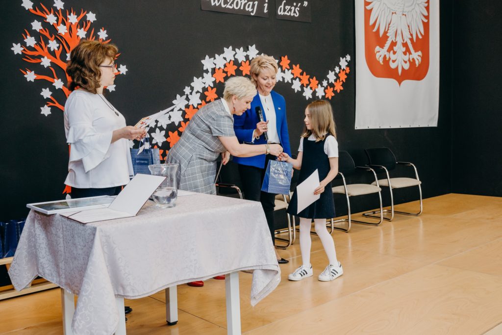 Spotkanie uświetnił występ dzieci z Przedszkola nr 3, naszych uczniów z kl. „0A” oraz Agnieszki Włodarczyk z kl 4B, która zaśpiewała cover piosenki „Ale w koło jest wesoło” z rep. zespołu Perfect, z tekstem Pani Magdaleny Buczek (nauczyciela muzyki). Serdecznie gratulujemy wyróżnionym uczniom.