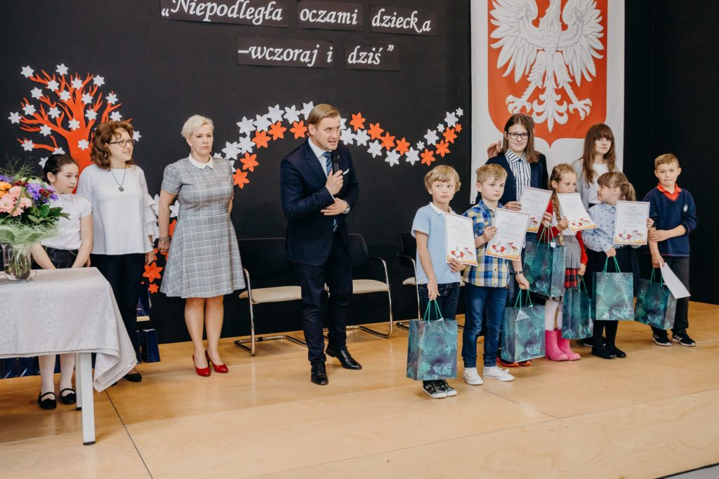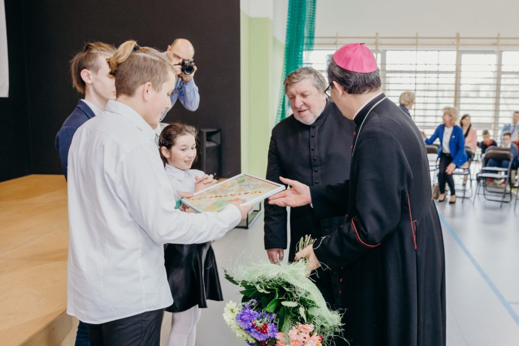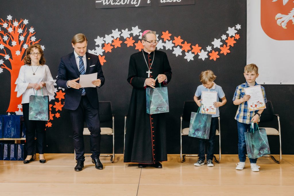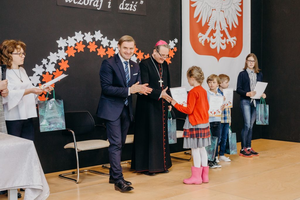 13.05.2019 w naszej szkole odbyło się uroczyste wręczenie nagród w konkursie plastycznym „Niepodległa oczami dziecka wczoraj i dziś”. W uroczystości wzięli udział wyjątkowi goście: ks. bp Rafał Markowski, prezydent Pruszkowa Pan Paweł Makuch oraz wiceprezydent Pruszkowa Pani Beata Czyżewska.
