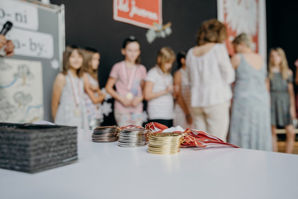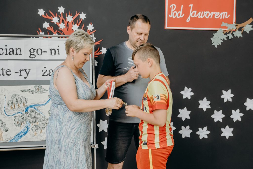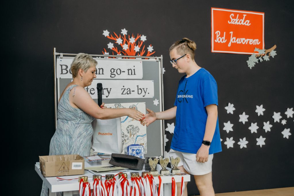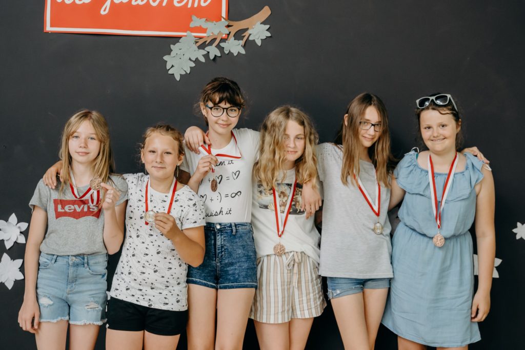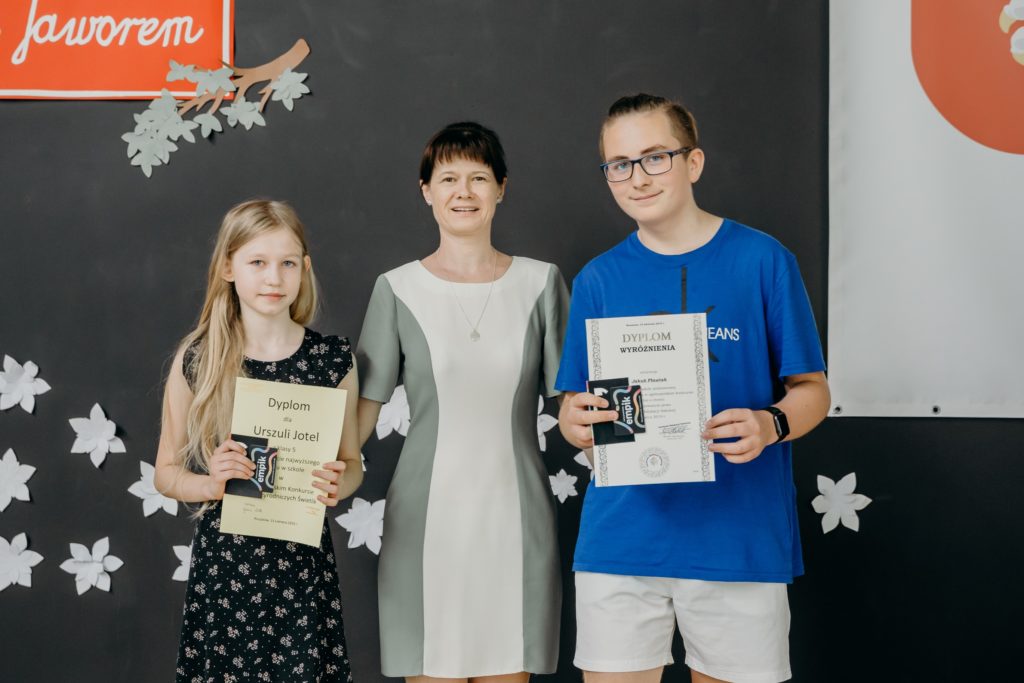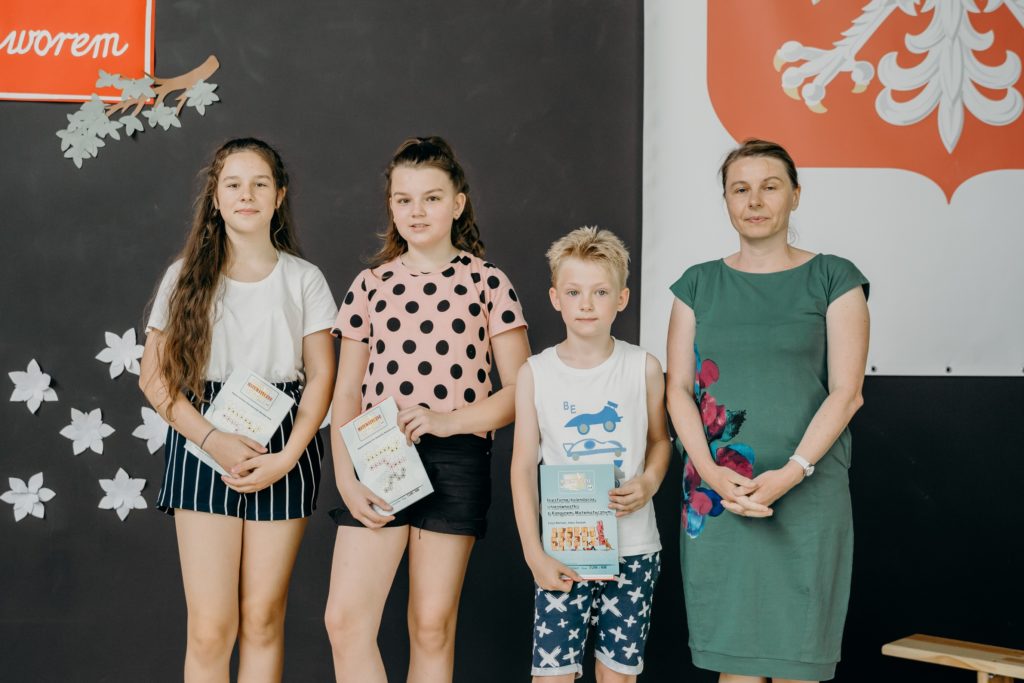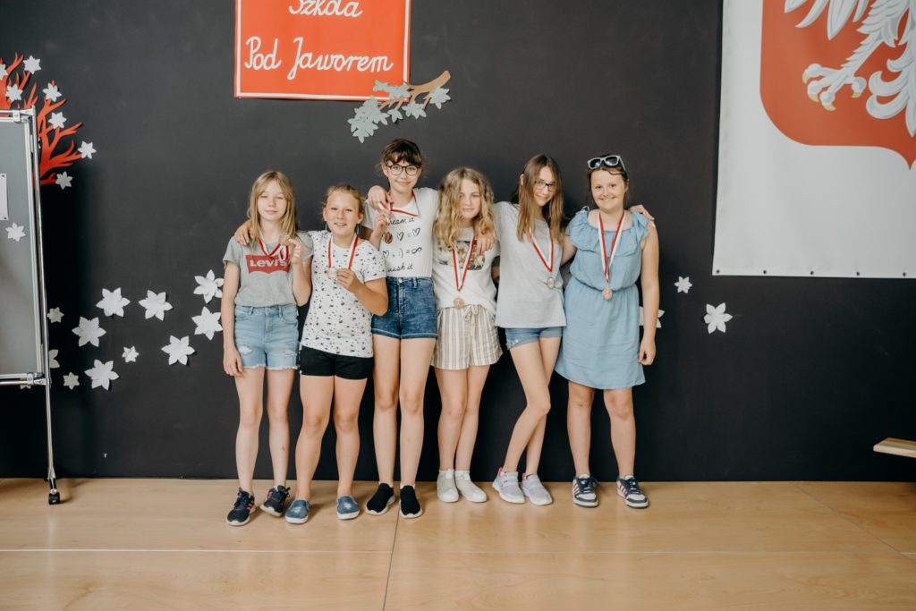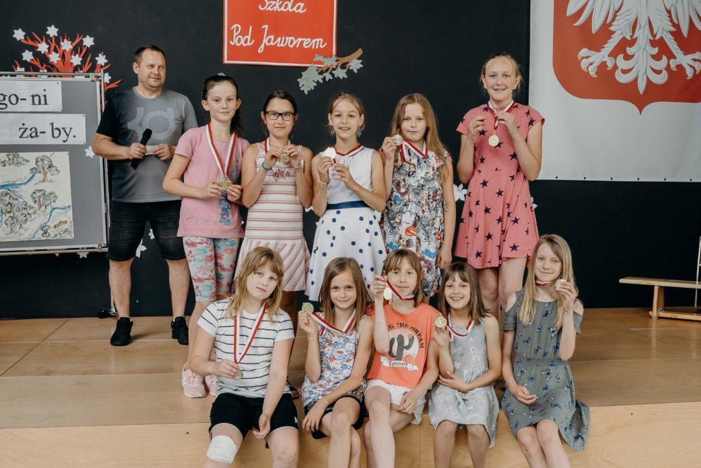 Klasy 4-8 spotkały się na uroczystym wręczeniu nagród w szkolnych konkursach. Spotkanie uświetniła uczennica klasy 5 – Urszula Jotel, która pięknie zagrała na skrzypcach dwa utwory. Wręczono również medale w szkolnych rozgrywkach tenisa stołowego, piłki ręcznej i nożnej. Serdecznie gratulujemy wyróżnionym.