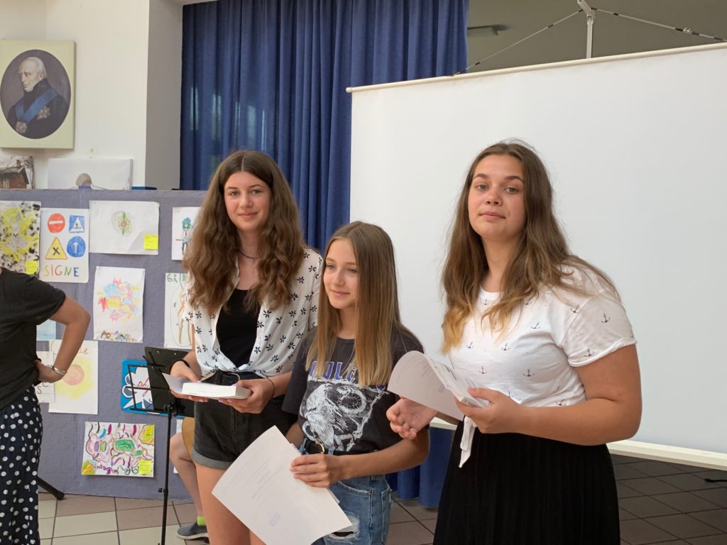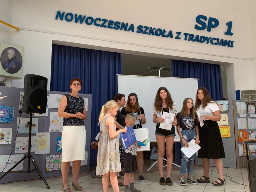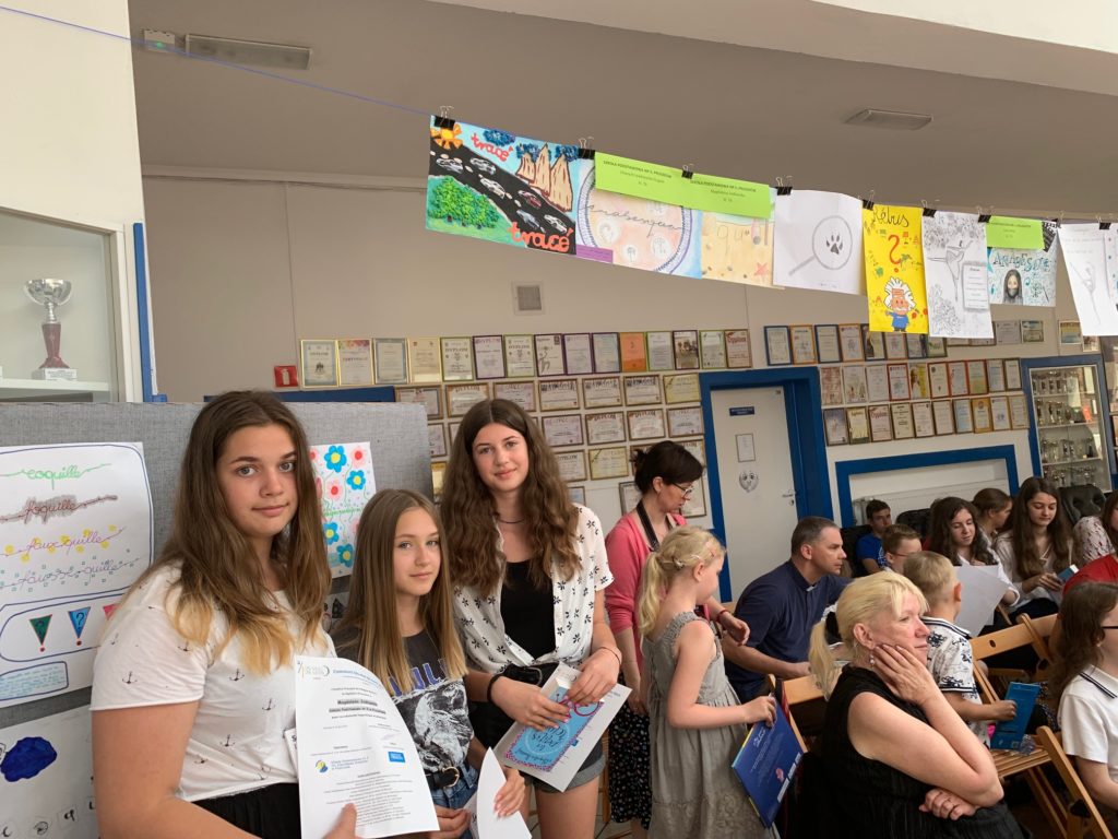 Dnia 14 czerwca 2019 r. uczennice Oliwia Krzywkowska-Gugała, Julia Wylot i Magda Jodłowska z klasy 7B zostały zaproszone na uroczysty Finał Konkursu w Szkole Podstawowej 1 w Piastowie oraz rozdanie nagród laureatom VI konkursu plastyczno-językowego „Powiedz mi 10 słów” organizowanego we współpracy z Instytutem Francuskim na całym świecie.
