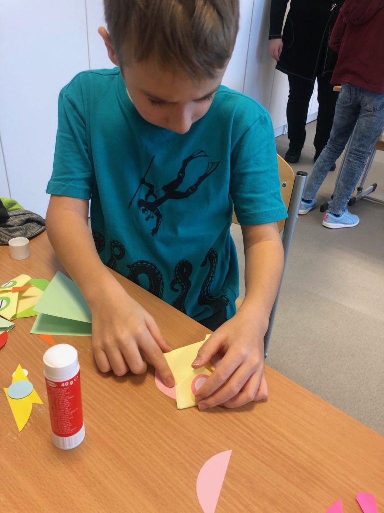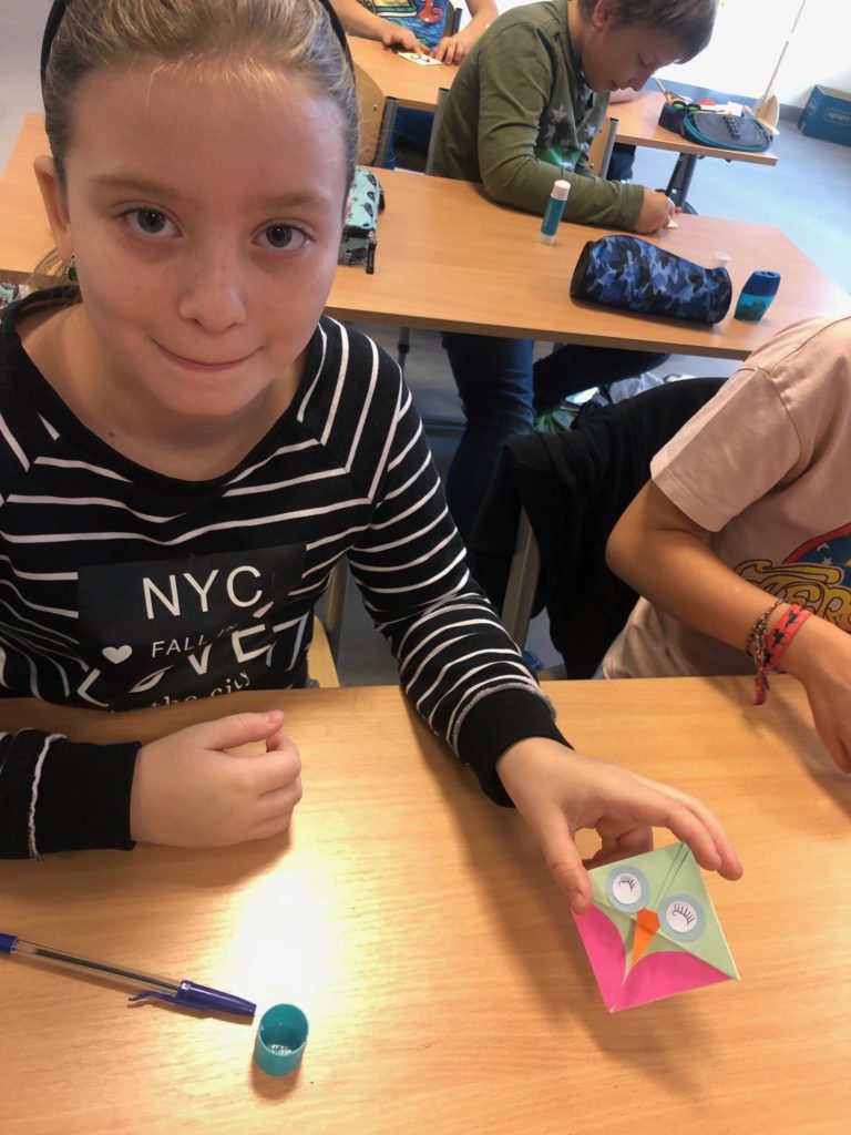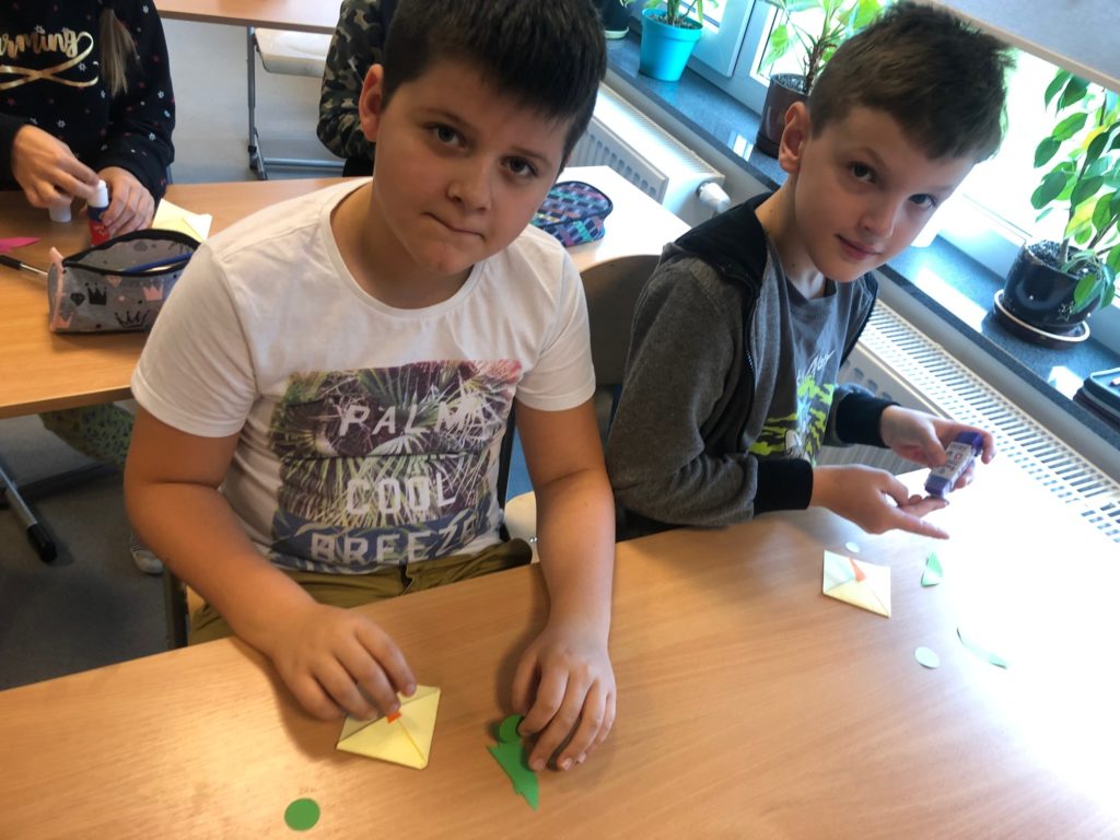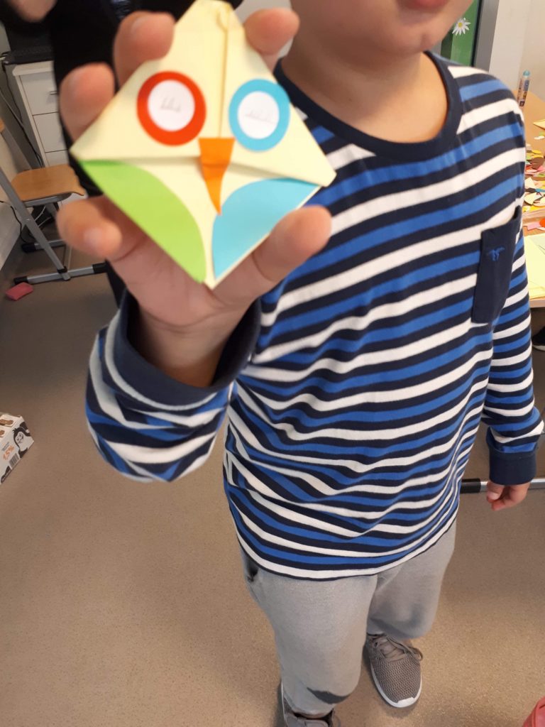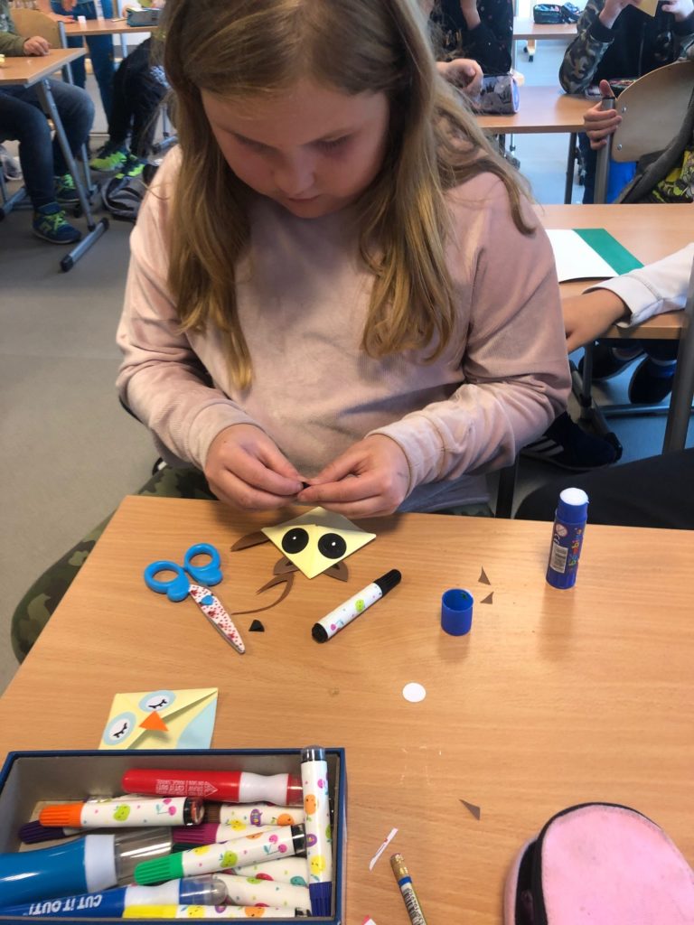 Z okazji Światowego Dnia Origami uczniowie z klas 2D i 3A, miały przyjemność gościć Panią Annę Janczyk, która przeprowadziła warsztaty z origami. Wprowadziła dzieci w tajniki artystycznego składania papieru. Z kawałka papieru powstały piękne zakładki – kolorowe sówki. Dzieci pracowały w dużym skupieniu, co zaowocowało radością i satysfakcja z wykonanych prac.