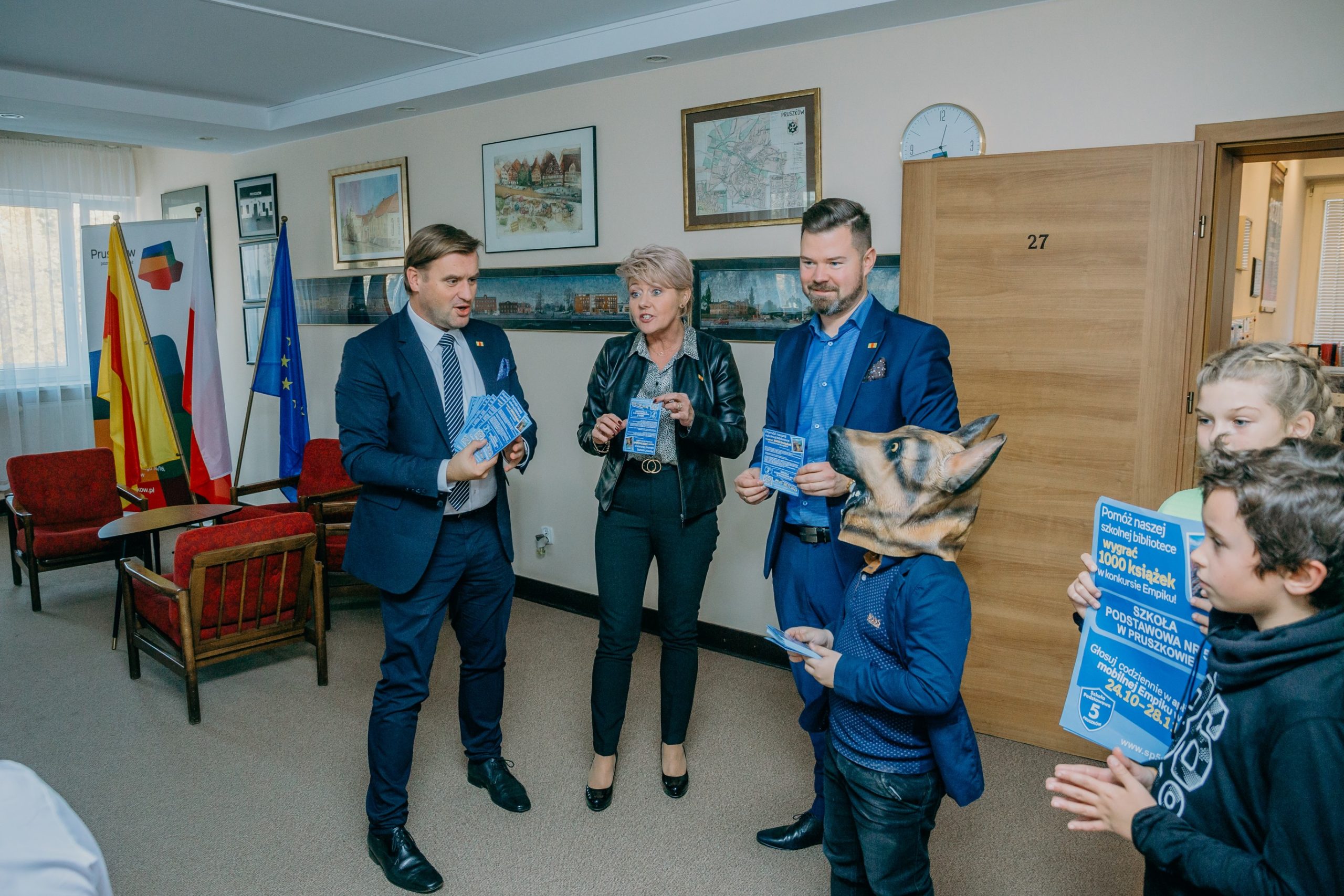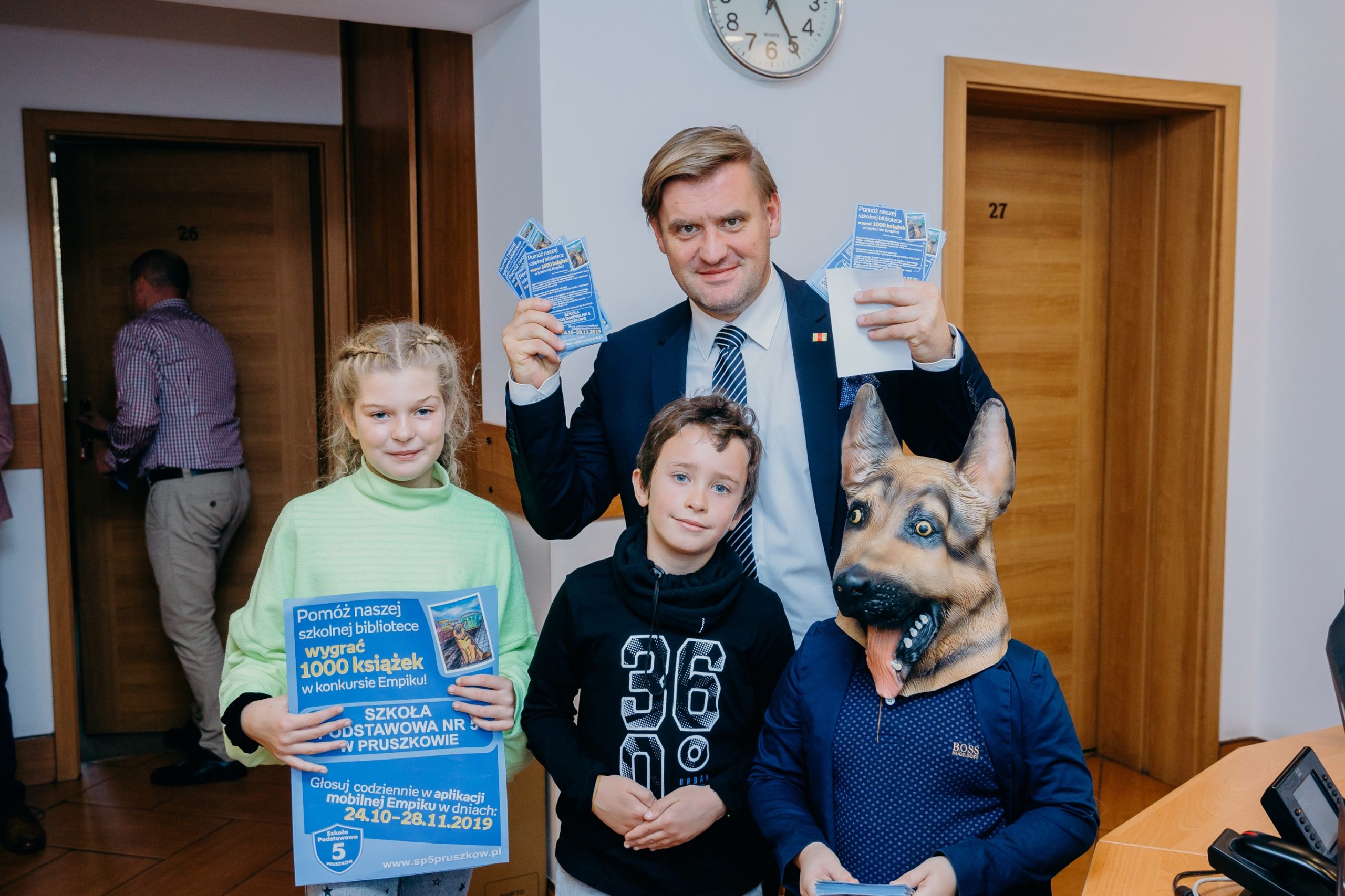 Czy wiedzieliście że Urząd Miasta Pruszków to przyjazne miejsce dla psów, a zwłaszcza jednego – Lampo – naszej maskotki w konkursie Empiku? Prezydent Pruszkowa Pan Paweł Makuch oraz Jego Zastępcy Pani Beata Czyżewska i Pan Konrad Sipiera serdecznie przyjęli nas w Urzędzie Miasta i promowali wśród interesantów i pracowników naszą akcję: „1000 książek dla SP 5 w Pruszkowie”. Są z nami od początku konkursu i serdecznie zachęcają do oddawania codziennie głosów na SP 5 w mobilnej aplikacji Empiku. ZAGŁOSUJ I TY!