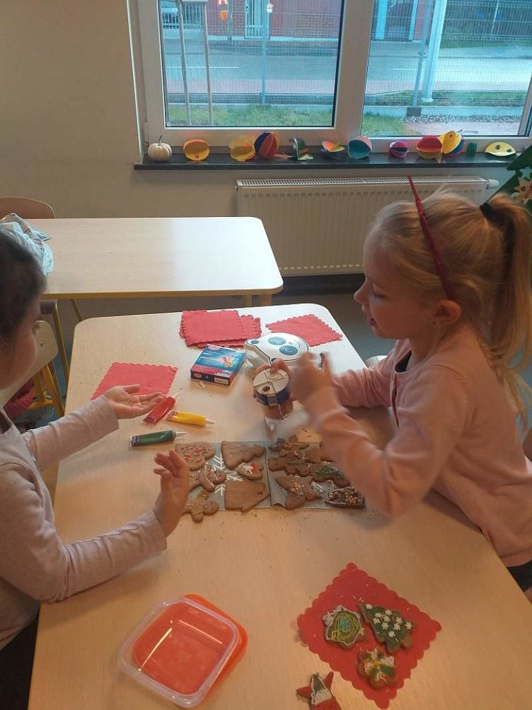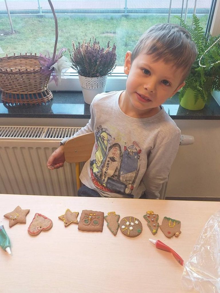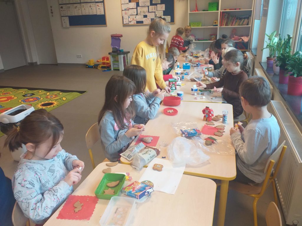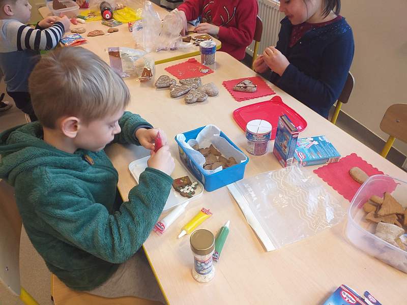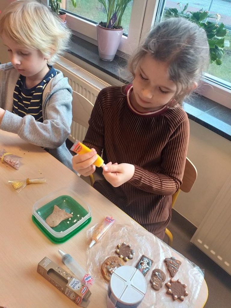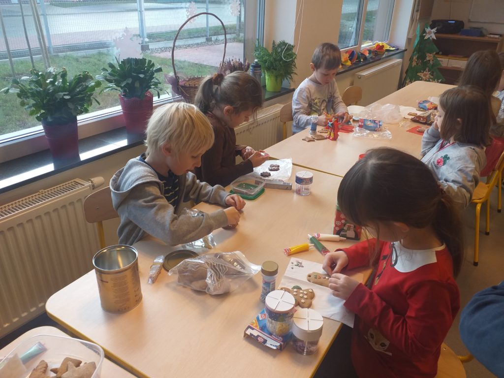 Przedświąteczny czas najmłodsi uczniowie naszej szkoły z klas 0A i 0C spędzili twórczo i niezwykle serdecznie. Uczniowie przy wspólnym stole zasiedli, by podzielić się opłatkiem i złożyć sobie nawzajem życzenia. Kochane mamy upiekły pierniczki, a dzieci je udekorowały. Wykonały także kartki świąteczne z motywami choinek.