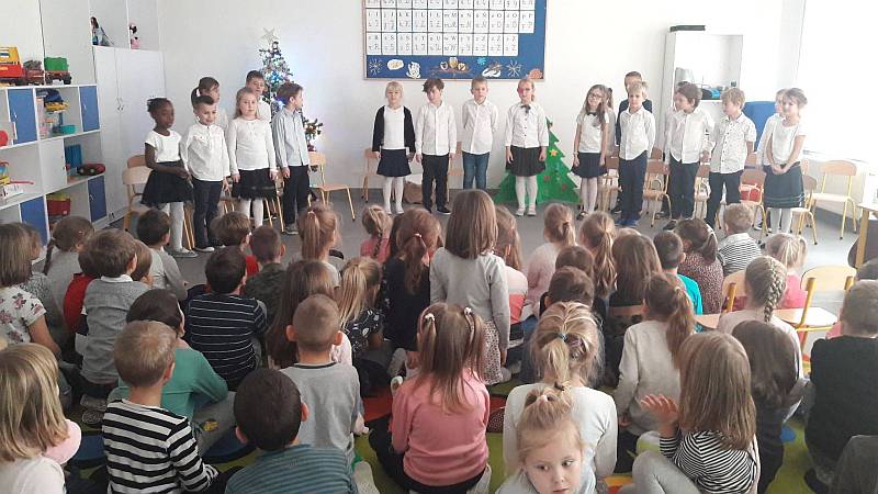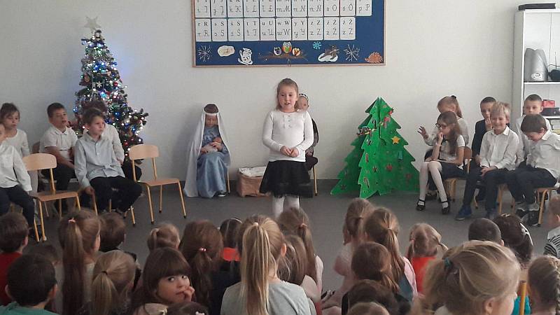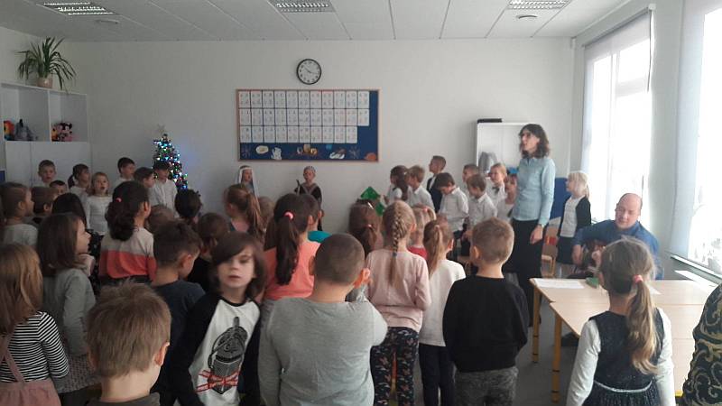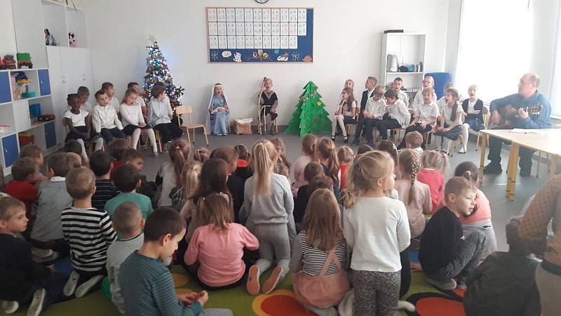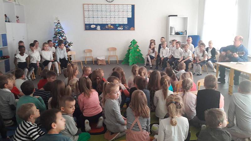 Dnia 19 grudnia 2019 r. uczniowie klasy IA odwiedzili dzieci z Oddziału Przedszkolnego naszej szkoły z programem świątecznym. Był to montaż słowno-muzyczny, w którym mogli wziąć udział, również widzowie. W jaki sposób? Poprzez wspólne śpiewanie kolęd, które przeplatały teksty i wiersze. Dziękujemy Paniom z Oddziału Przedszkolnego za gościnę oraz Panu Skwara za piękny akompaniament na gitarze.