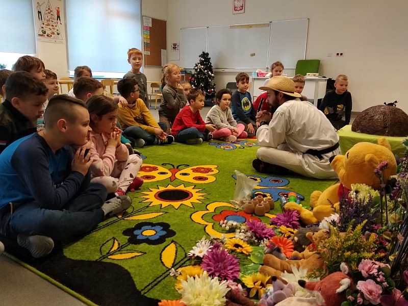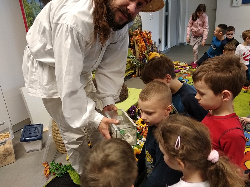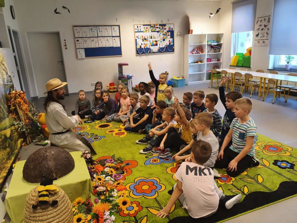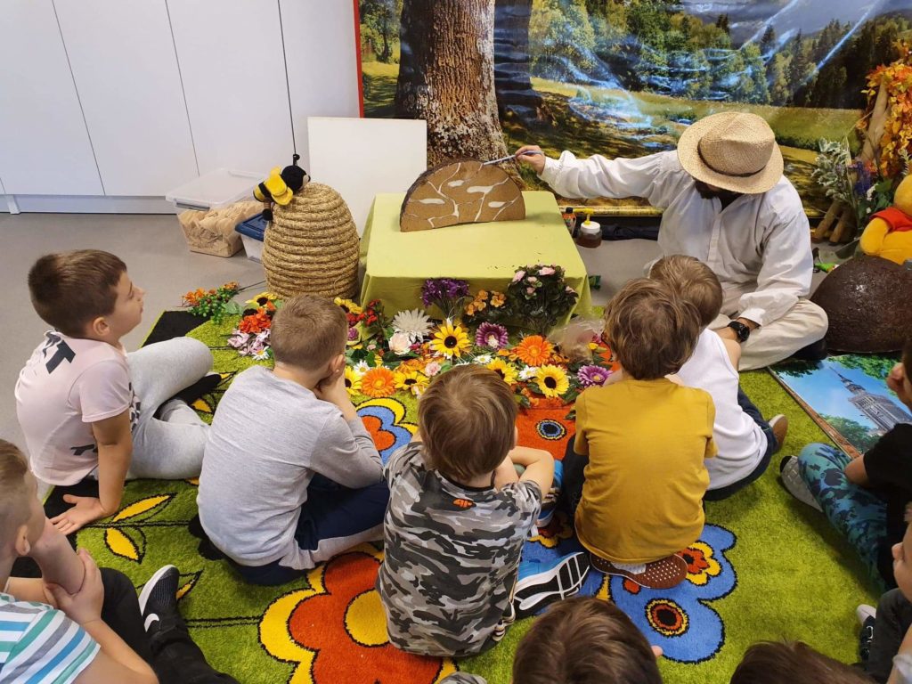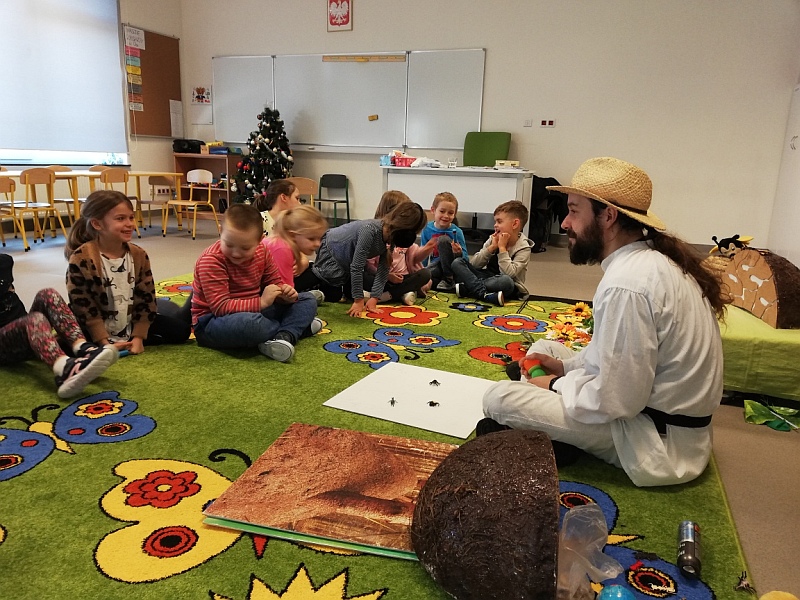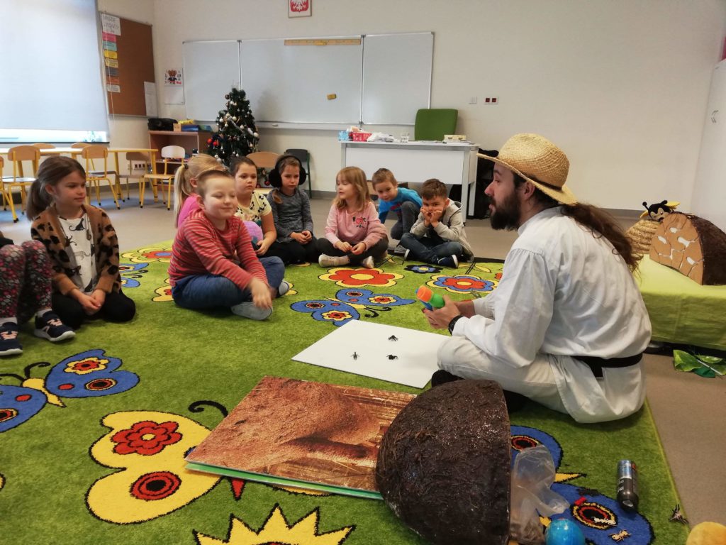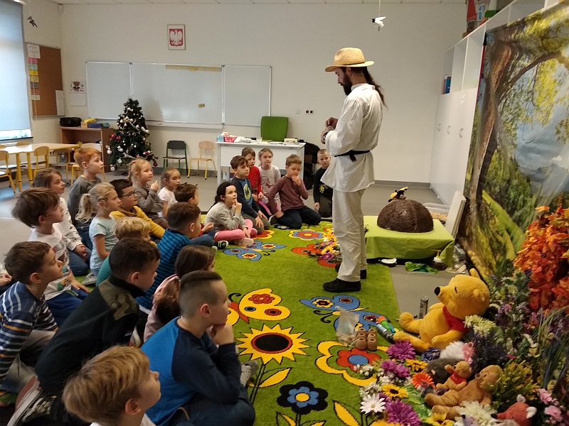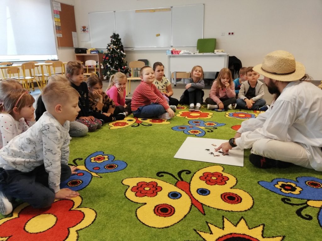 w zajęciach pod tytułem „Fascynujący Świat Mrówek” prowadzonych przez Mistrza pszczelarstwa Aleksandra Rębacza. W czasie godzinnych warsztatów, działając na wszystkie zmysły (wzrok, słuch, zapach, smak), w otoczeniu scenografii i licznych akcesoriów wprowadzeni zostali uczniowie w fascynujący i tajemniczy świat, tych pracowitych i silnych owadów. Tablice edukacyjne i obrazowość tych zajęć pozwoliła nam lepiej zrozumieć mrówki