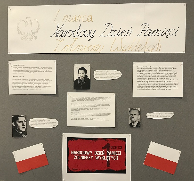 Nasza szkoła dołączyła do ogólnopolskiej akcji upamiętnienia Żołnierzy Wyklętych. W ramach akcji organizujemy konkurs plastyczny, prezentacje tematyczne oraz gablotę okolicznościową.