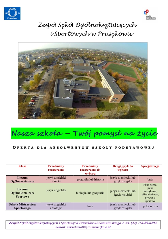 Zespół Szkół Ogólnokształcących i Sportowych w Pruszkowie Oferta Szkół Ponadpodstawowych Rekrutacja:https://www.zsoispruszkow.pl/rekrutacja/rekrutacja.html