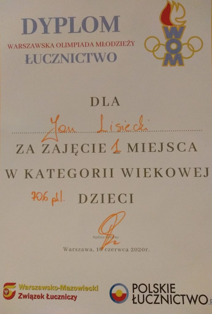 wygrał Warszawską Olimpiadę Młodzieży w kategorii dziecko.