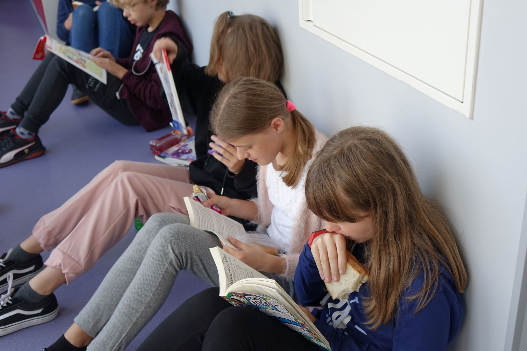 Tego dnia starsi uczniowie czytali książki na korytarzach szkoły, na boisku szkolnym, a młodszym uczniom książkę czytali nauczyciele w klasach. Dzieci z oddziałów przedszkolnych udały się do biblioteki szkolnej, gdzie wysłuchały czytanej książki przez Panią Ewę.