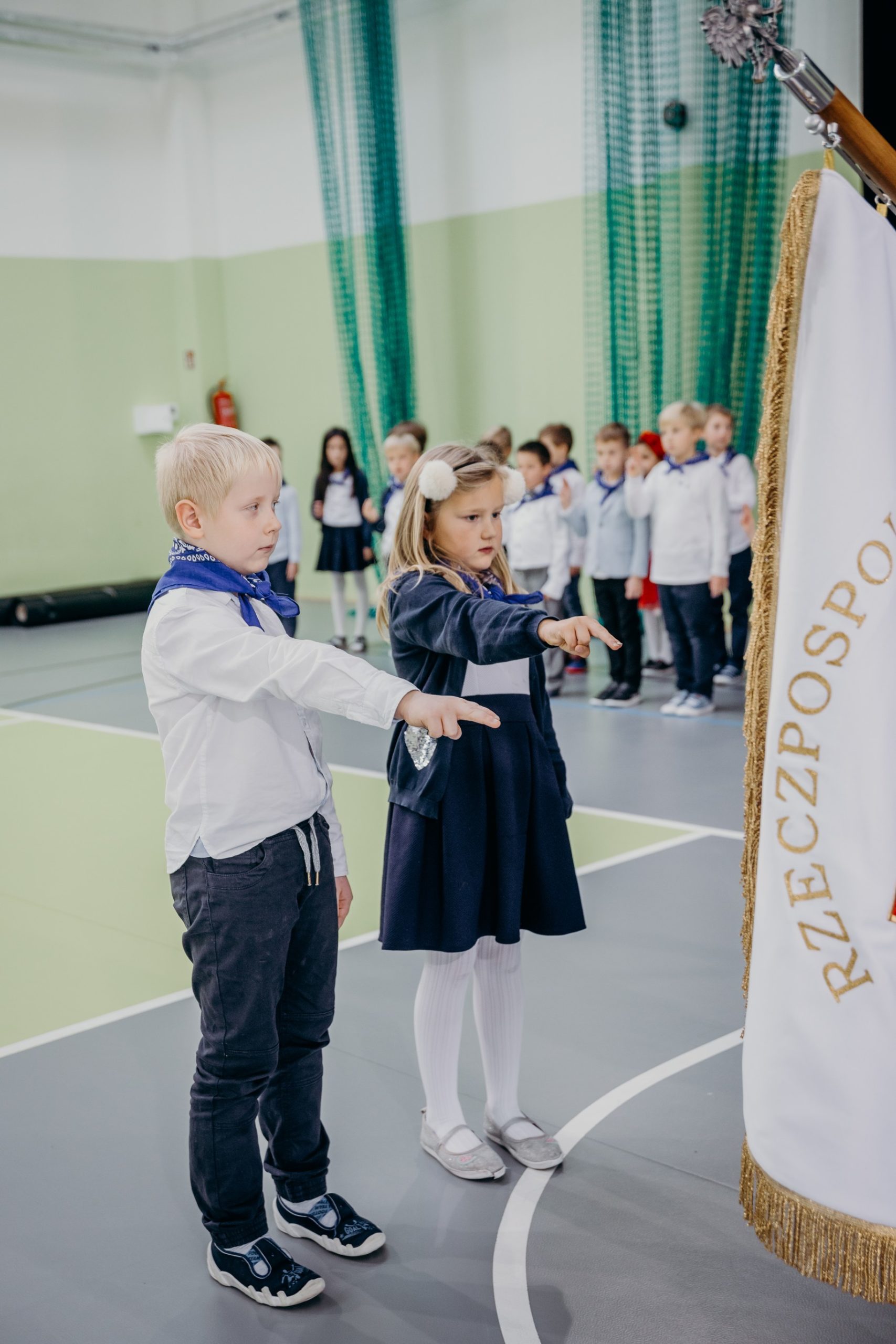 Dnia 15.10.2020 blisko 100-u „pierwszaków” zostało pasowanych na uczniów SP 5 w Pruszkowie. Wiązało się to z uroczystym ślubowaniem, które zostało złożone na sztandar szkoły. Wszyscy uczniowie otrzymali od Rady Rodziców pamiątkowe przypinki w formie tarczy szkolnej. „Pierwszakom” serdecznie gratulujemy stania się pełnoprawnymi uczniami naszej szkoły.