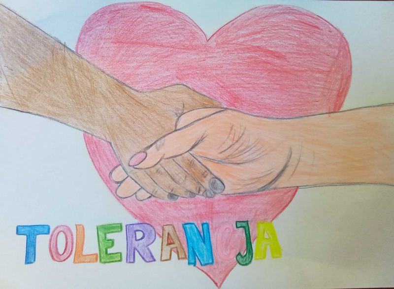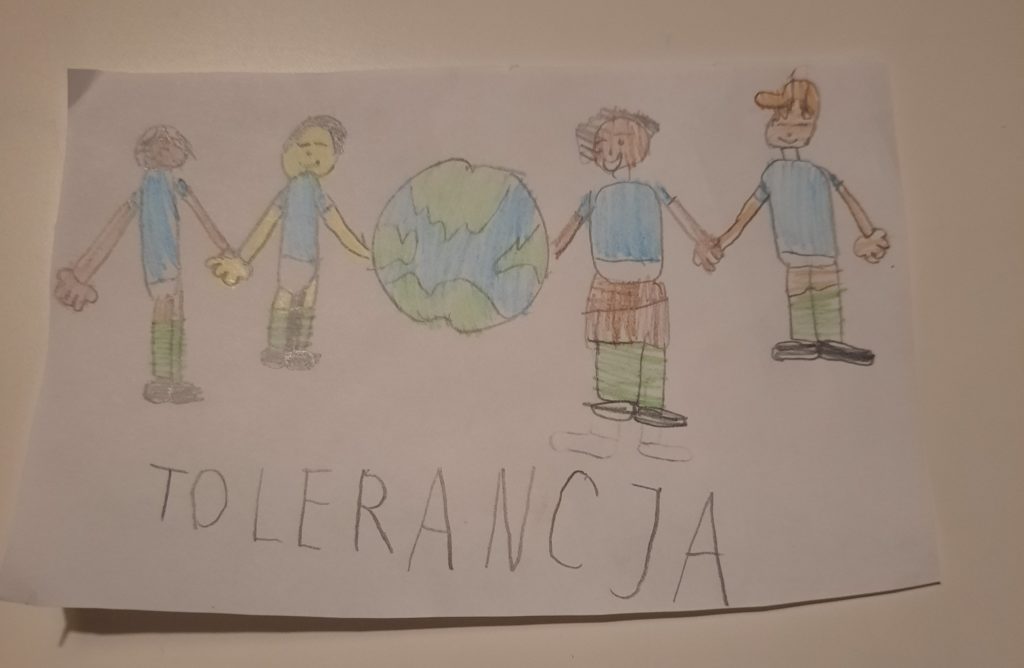 Z okazji obchodów Międzynarodowego Dnia Tolerancji obchodzonego na świecie dnia 16 listopada w klasie 1D uczniowie, by wziąć czynny udział w tym święcie i podkreślić jego ważność, narysowali prace plastyczne dotyczące tolerancji.