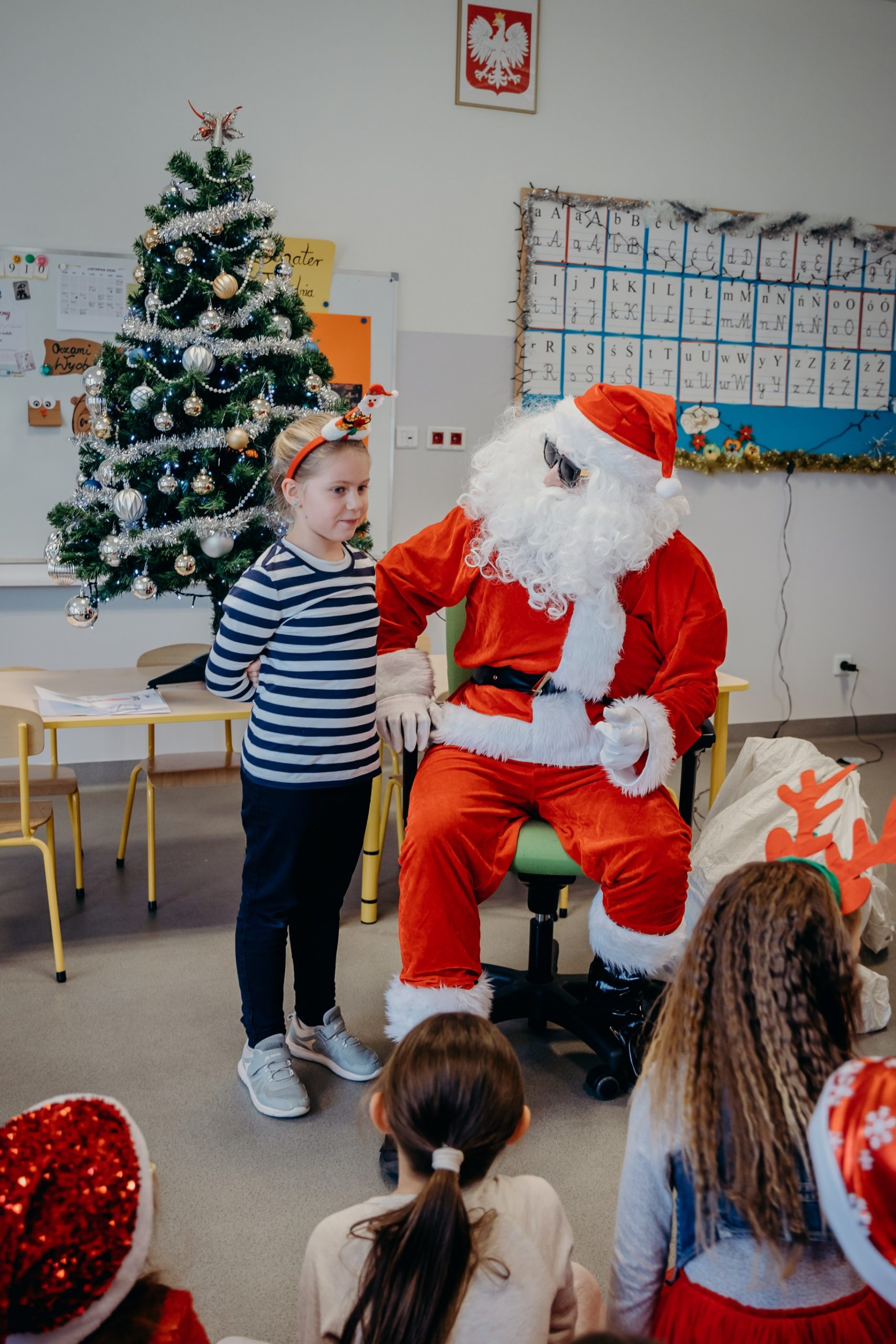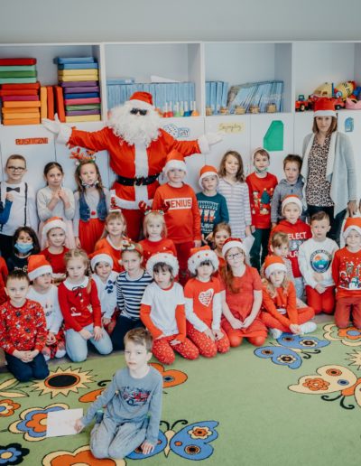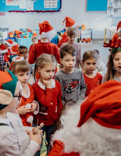 Uczniowie przywitali Go piosenką i wierszykami, a niektórzy przygotowali specjalne kartki świąteczne. Mikołaj wręczył każdemu podarunek i dzielnie pozował do zdjęć. Obiecał też, że gdy zdalne nauczanie się skończy, odwiedzi wszystkich uczniów, nawet jeśli miałby przyjechać w czerwcu.