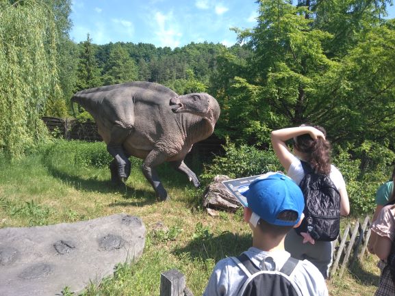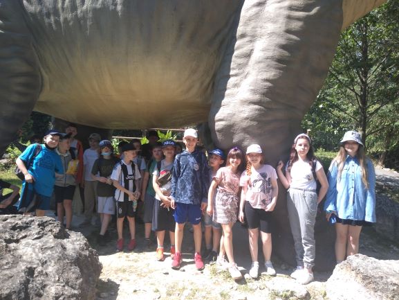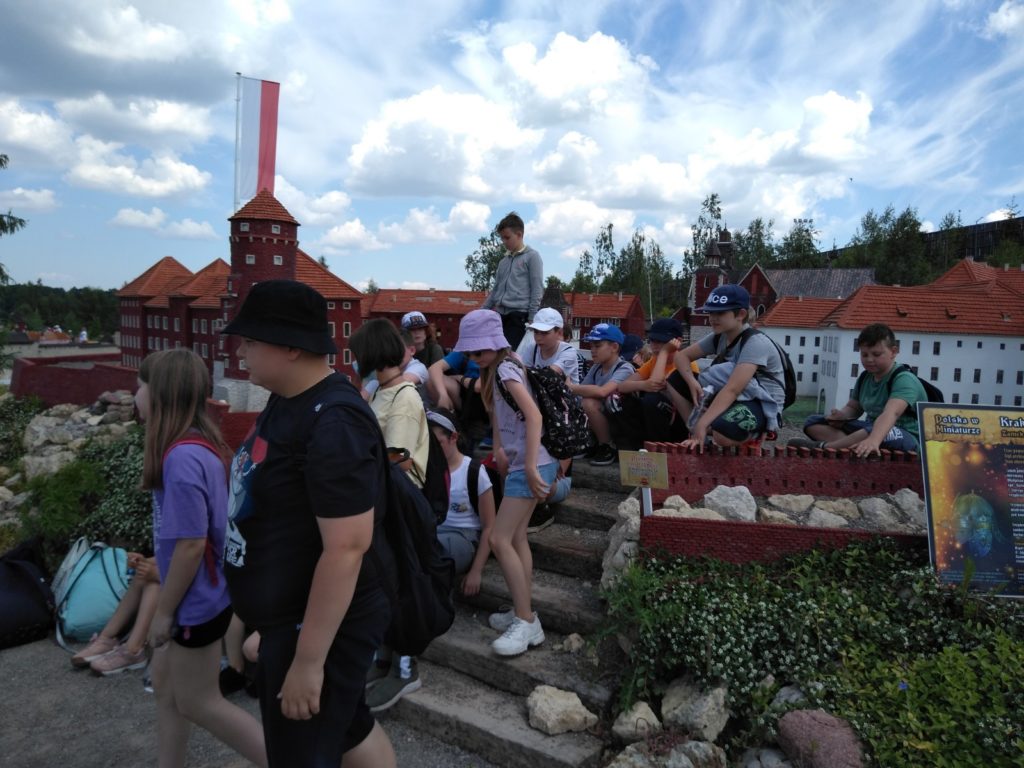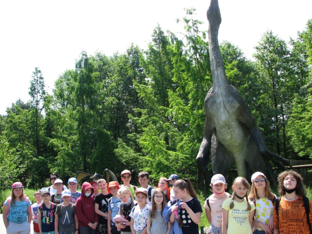 Dnia 7 czerwca 2021 r. odbyła się wycieczka klas 4A i 4B do PARKU JURAJSKIEGO w BAŁTOWIE – krainy dinozaurów. Niezwykłą przygodę rozpoczęliśmy od Jura Parku. Wędrując ścieżkami przez park widzieliśmy modele dinozaurów i innych prehistorycznych stworzeń, oczywiście wszystkie naturalnej wielkości. Pełnym emocji punktem wycieczki było Oceanarium. Dzięki nowoczesnej technologii dowiedzieliśmy się, jak wyglądało podwodne życie miliony lat temu. Spotkanie „oko w oko” z rekinem zmroziło krew w żyłach. Wielkie zainteresowanie wzbudziło zwiedzanie Bałtowskiego Zwierzyńca. Najpierw uczniowie zobaczyli ciekawe gatunki ptactwa i drobnych ssaków. W drugiej części Zwierzyńca odbyli przejażdżkę amerykańskim autobusem pomiędzy zwierzętami współcześnie żyjącymi (m.in.: strusie, lamy, wielbłądy, dziki, konie, jelenie i wiele innych gatunków) rozmieszczonymi na wielohektarowym terenie – tzw. Safari. W Muzeum Jurajskim dzieci obejrzały różnego rodzaju skamieniałości. Były to kości dinozaurów, szczątki morskich gadów zęby rekinów, koralowce i głowonogi. Kolejnym punktem naszego pobytu było magiczne miejsce zwane Sabatówką. Niemałą atrakcją był jurajski plac zabaw, na którym można było również świetnie pobawić się na statku pirackim, kolejce górskiej, karuzeli oraz zjeżdżając na zjeżdżalniach.  Uwieńczeniem wycieczki była przejażdżka na rollercoasterze. Z wycieczki do Krainy Dinozaurów wszyscy wrócili zadowoleni i pełni wrażeń.