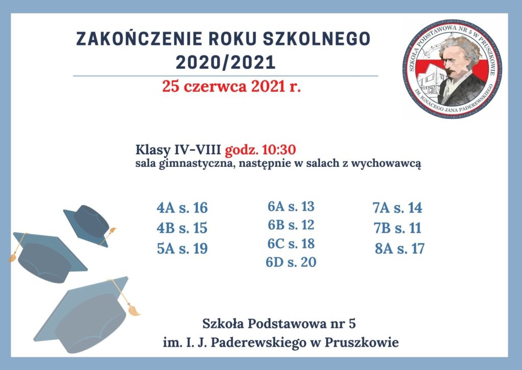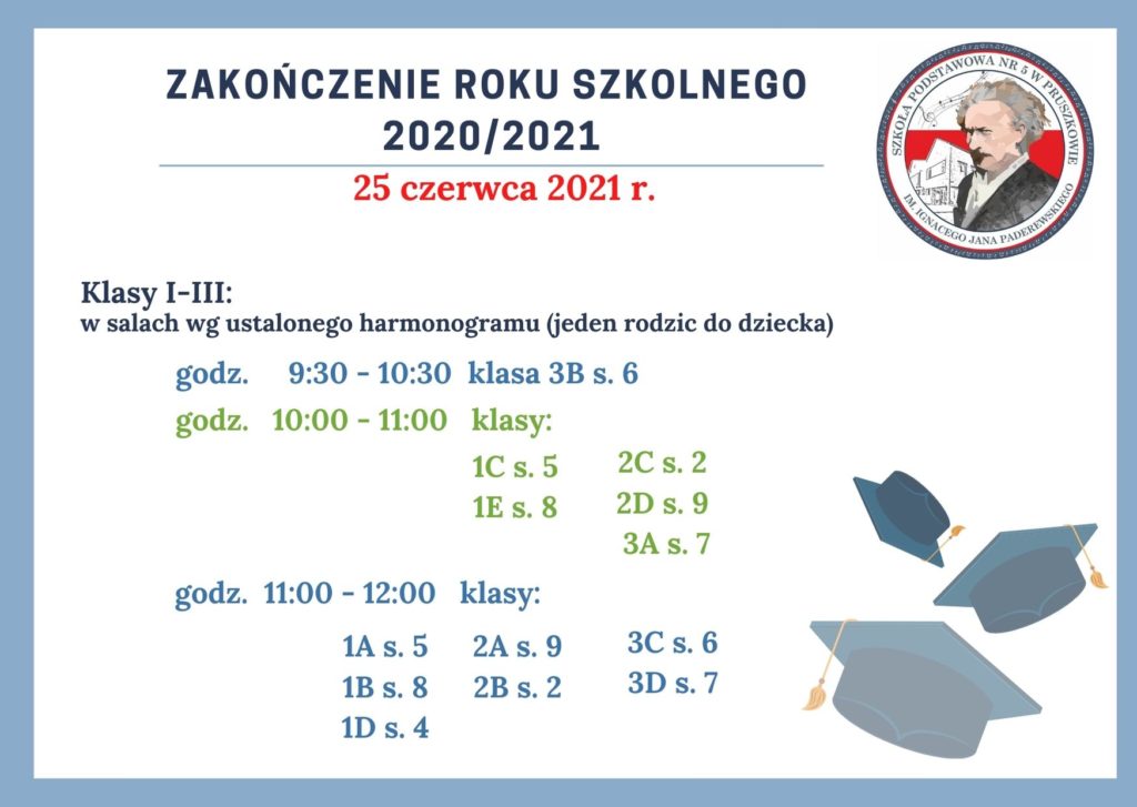 Harmonogram Zakończenia Roku Szkolnego 2020/2021