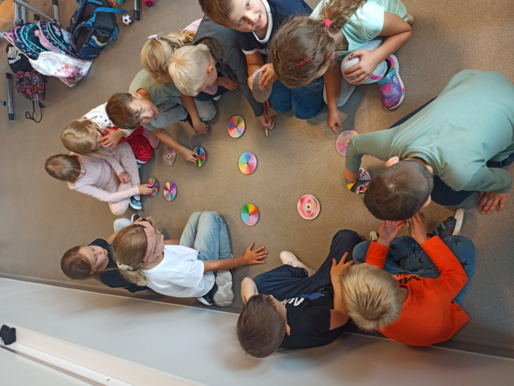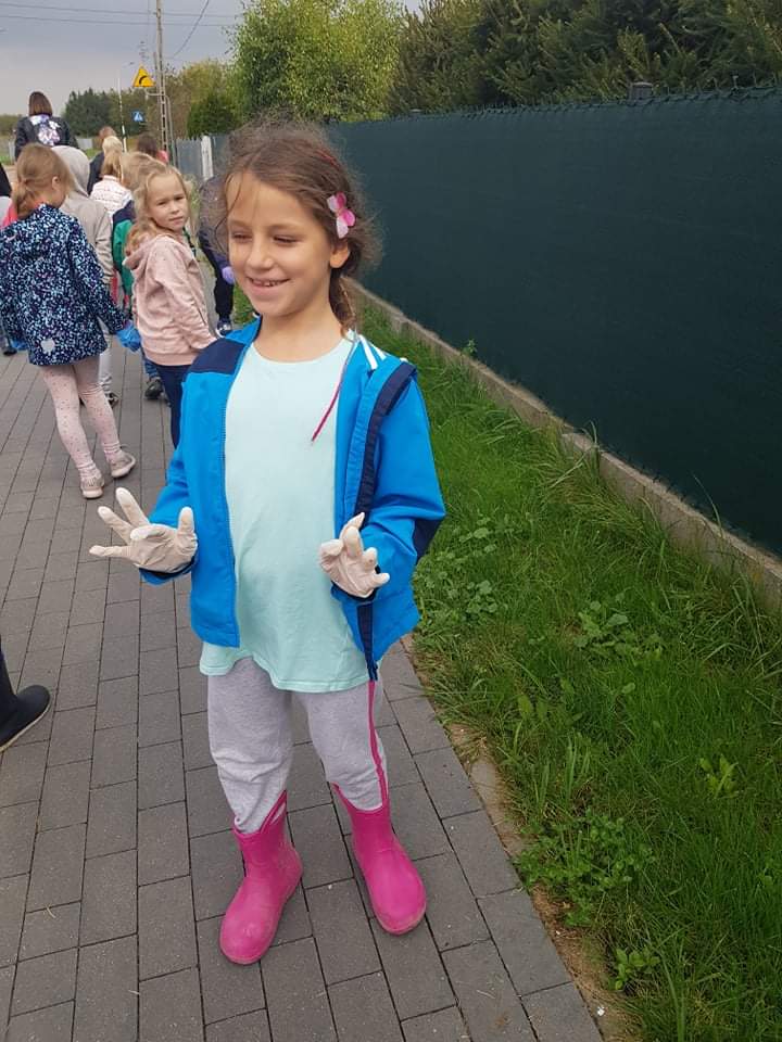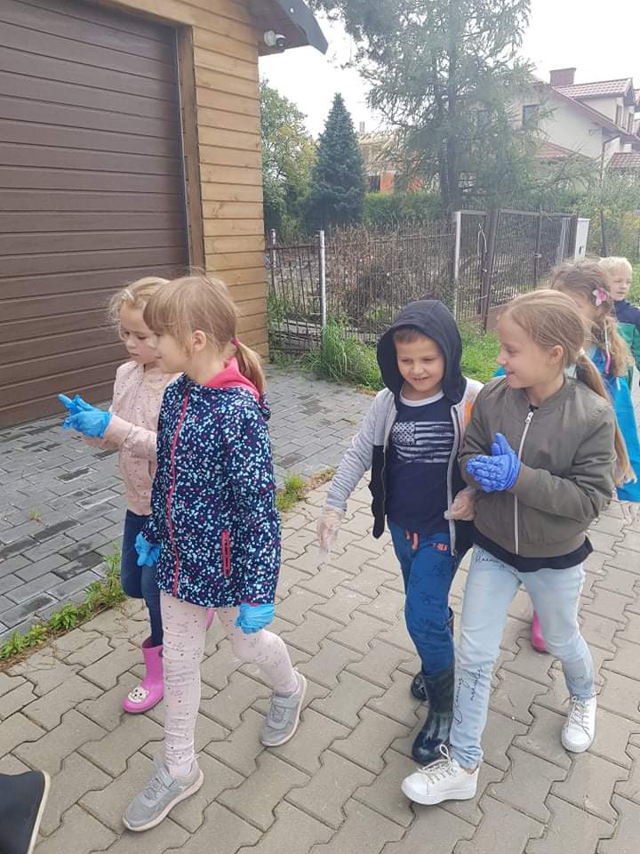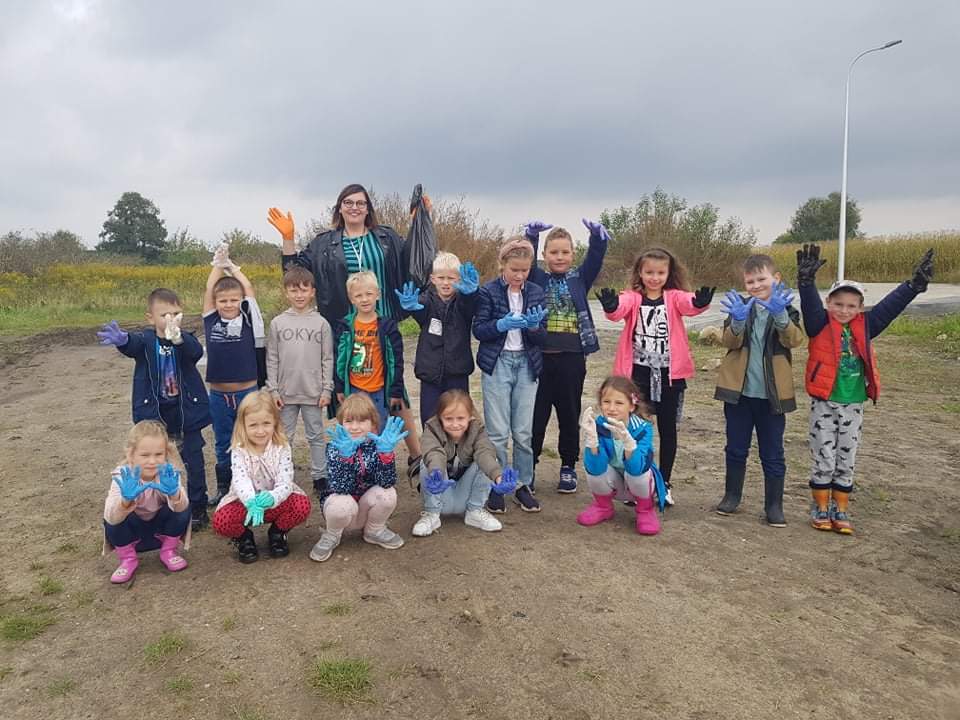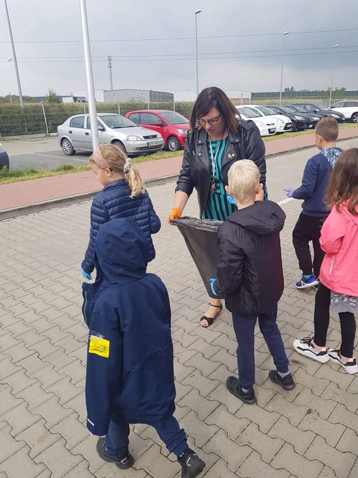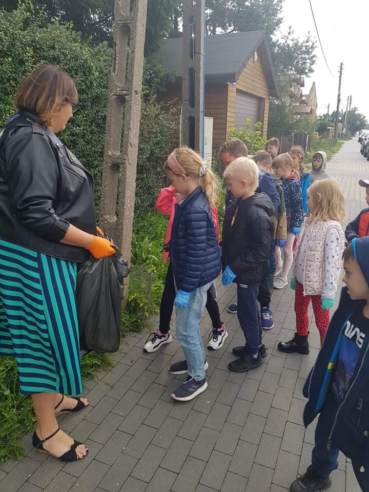 17 września 2021 r. uczniowie klasy 1B podczas zajęć rozmawiali o ekologii oraz dzielili się pomysłami, jak każdy z nas może zadbać o środowisko. Następnie wyruszyli na poszukiwanie śmieci. W nagrodę za ciężką pracę w drodze powrotnej zahaczyli o pobliski plac zabaw. Na koniec dnia wykonali bączki ze zużytych płyt CD.
