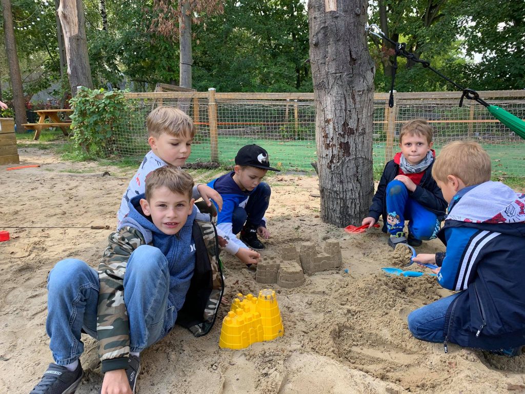 Uczniowie klas 1A, 1B, 1E i 2C dnia 21 września 2021 r. odwiedzili Labirynt w Milanówku. Każda klasa podzielona na mniejsze zespoły miała misje do wykonania. Odszukanie w labiryncie pożądanych wizerunków zwierząt  sprawiło im ogromną frajdę.  Były również zadania z mapą, odpoczynek w hamakach, zabawy w piasku na sztucznej plaży i berek w labiryncie. Zwieńczeniem cudownych chwil było pieczenie kiełbasek w ognisku. Uczniowie wracali zmęczeni, a ich głowy były pełne wspaniałych wrażeń.
