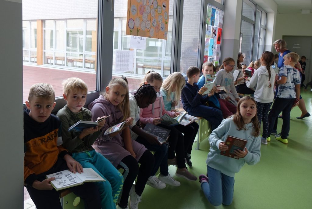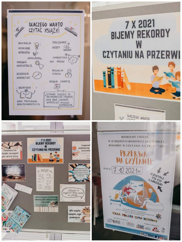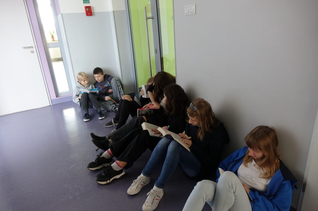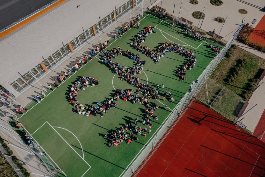 Zwieńczeniem akcji „Przerwa na czytanie” była próba pobicia zeszłorocznego rekordu w jednoczesnym czytaniu. Dlatego z książkami w ręku zebraliśmy się na boisku szkolnym i przez 10 minut czytaliśmy swoje ulubione lektury. Spontanicznie udało nam się ułożyć wielki napis SP5. Dowodem tego są poniższe zdjęcia wykonane z drona.