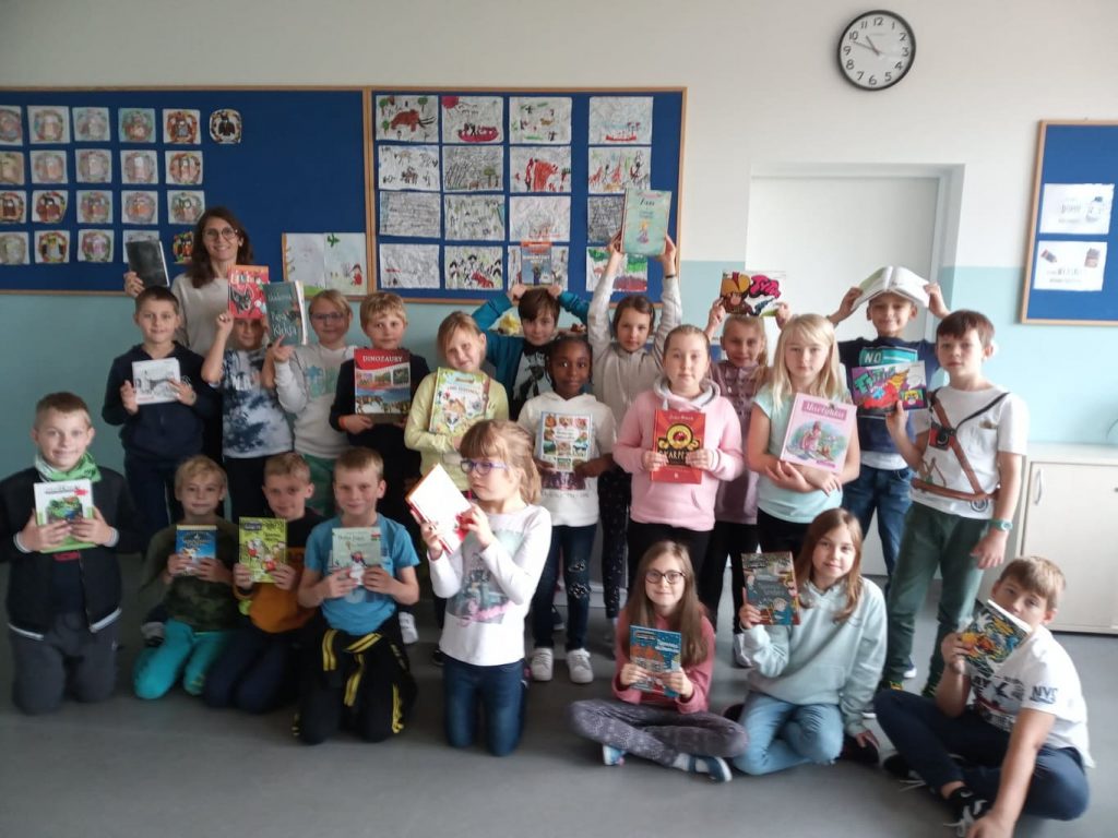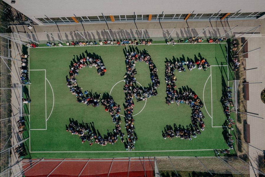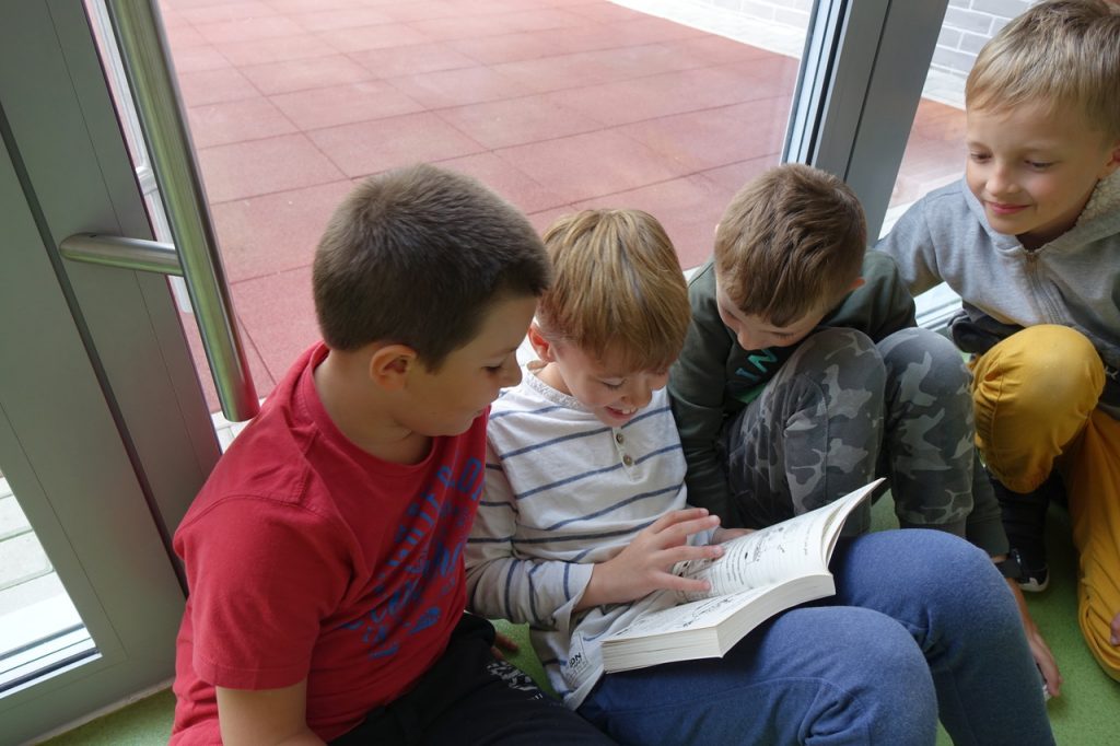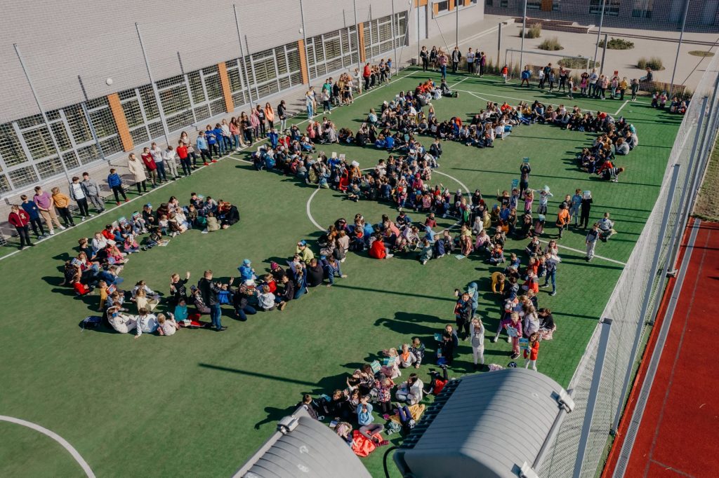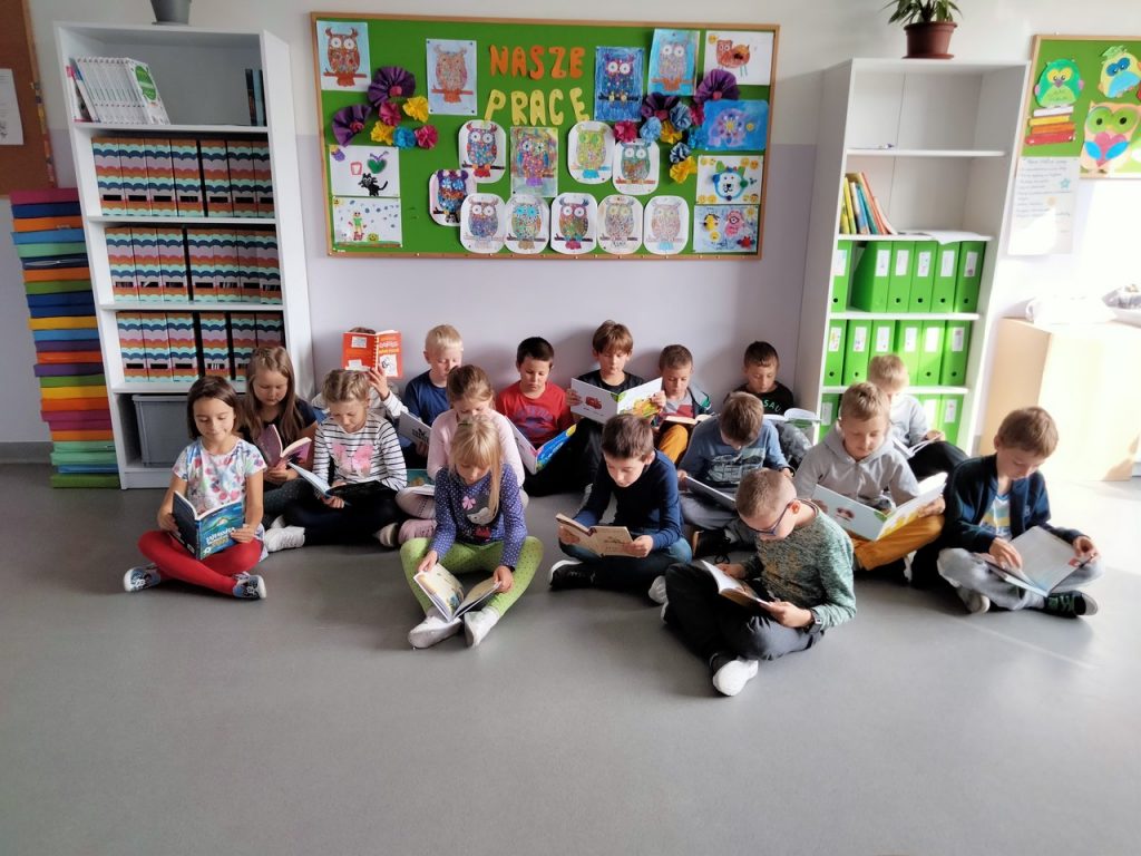 Zwieńczeniem akcji „Przerwa na czytanie” była próba pobicia zeszłorocznego rekordu w jednoczesnym czytaniu. Dlatego z książkami w ręku zebraliśmy się na boisku szkolnym i przez 10 minut czytaliśmy swoje ulubione lektury. Spontanicznie udało nam się ułożyć wielki napis SP5. Dowodem tego są poniższe zdjęcia wykonane z drona.