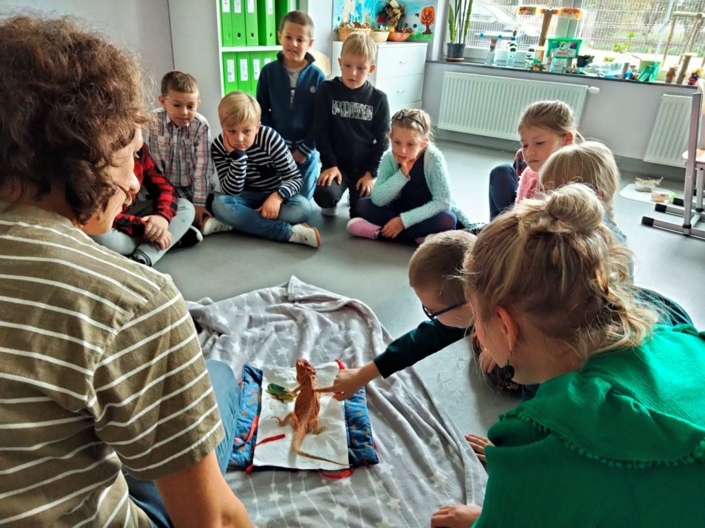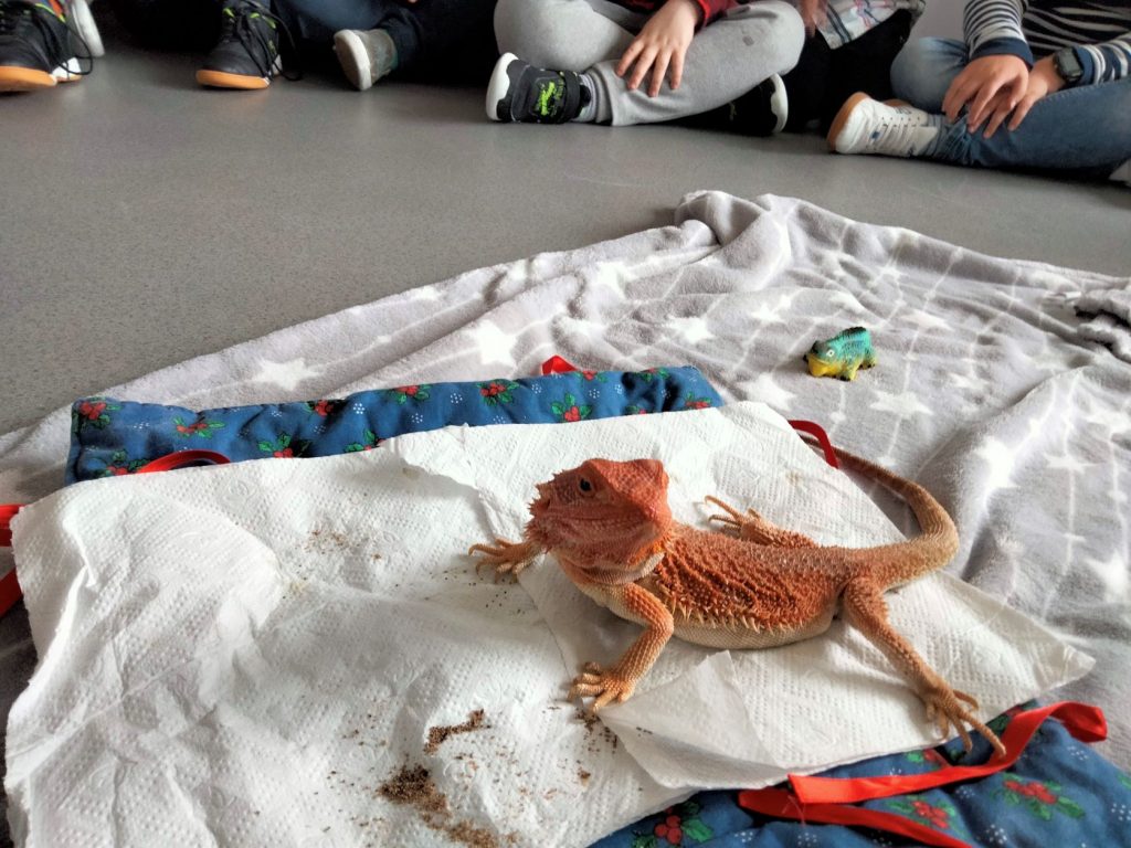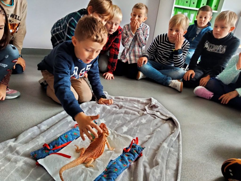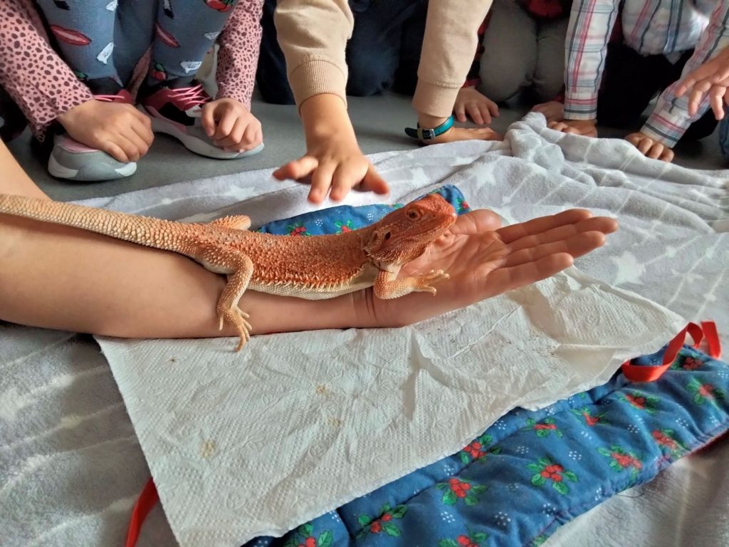 15 października 2021 r. uczniowie klasy 2D spotkali się z jaszczurką Agamą Brodatą o imieniu Kryngolina. Mogli ją obserwować oraz głaskać. Mama Wojtka bardzo ciekawie opowiadała o jej zwyczajach.