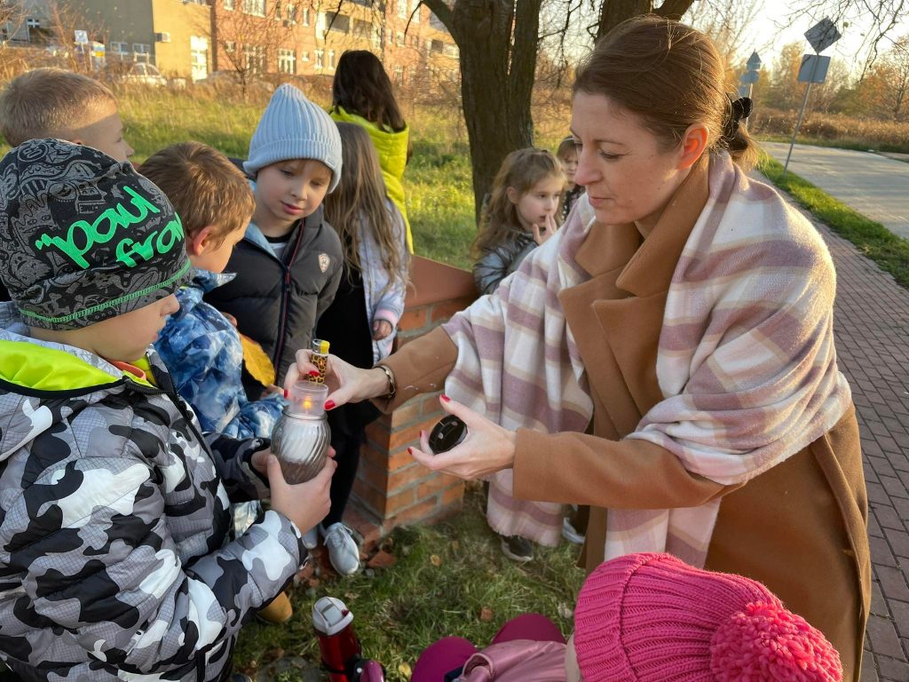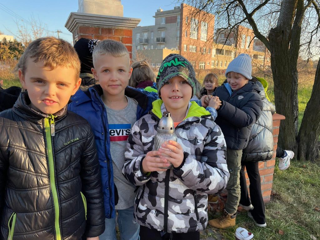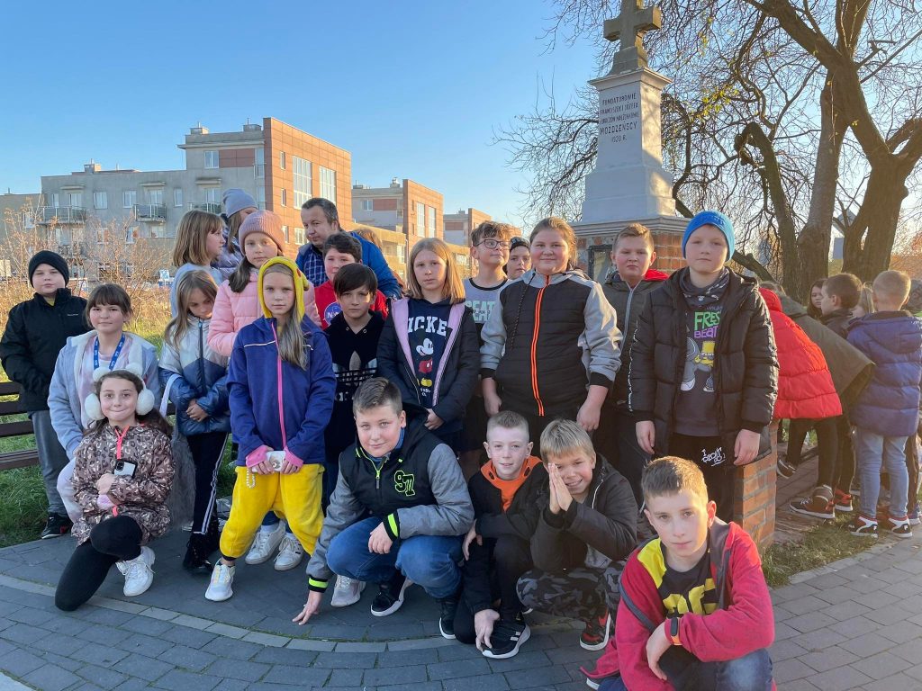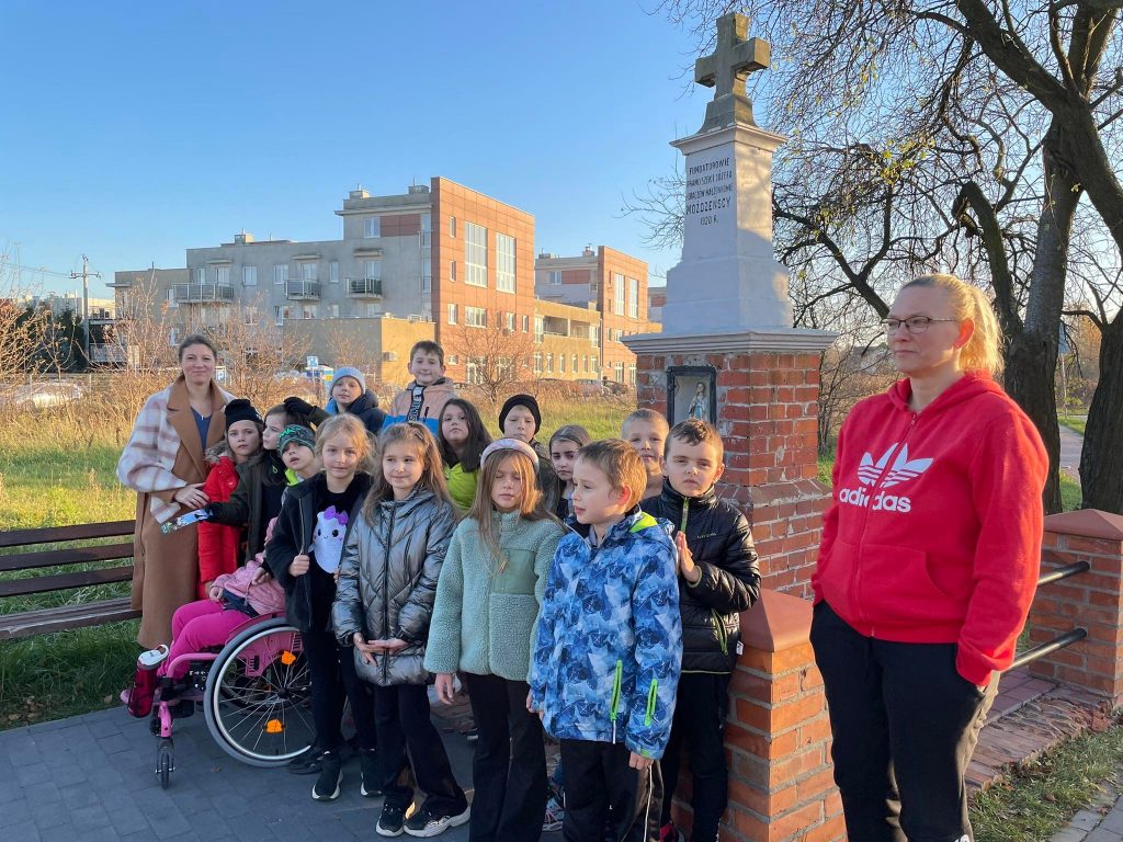 Po radosnym świętowaniu podczas akcji „Dzień Nieba”, niektórzy uczniowie naszej szkoły udali się w miejsca nawiązujące do ważnych wydarzeń historycznych, aby zapalić znicz wdzięczności i pamięci. Uczniowie klasy 3A i 3B wzięli udział w „Spacerze pamięci” zorganizowanym przez edukatora z Muzeum Dulag 121.Uczniowie klas 4. oraz 2C i 2E udali się do przydrożnej kapliczki z 1920 r. znajdującej się przy ul. Zdziarskiej ufundowanej przez Franciszka i Józefę Możdżeńskich w roku zwycięskiej Bitwy Warszawskiej.