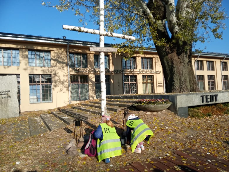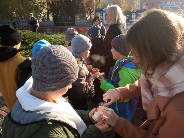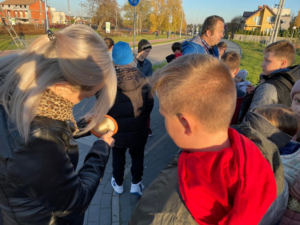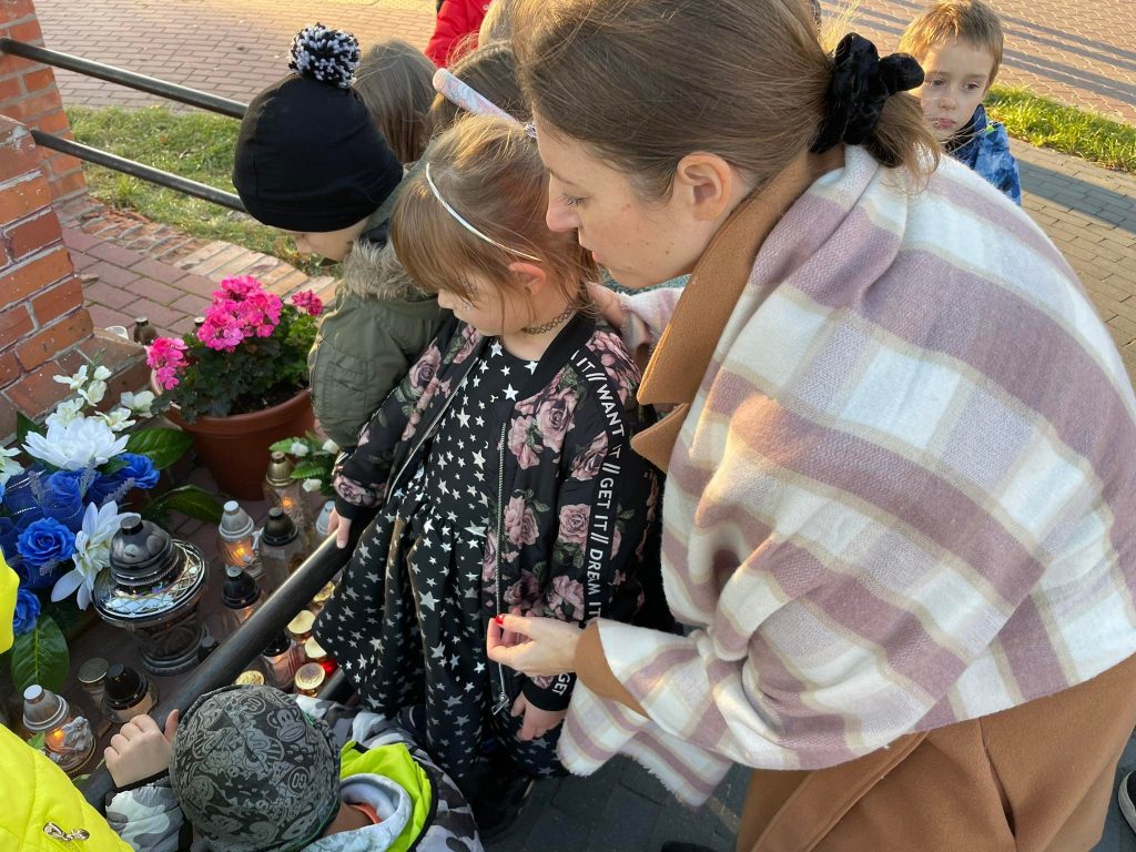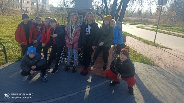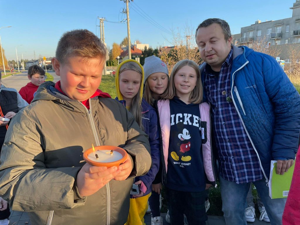 Po radosnym świętowaniu podczas akcji „Dzień Nieba”, niektórzy uczniowie naszej szkoły udali się w miejsca nawiązujące do ważnych wydarzeń historycznych, aby zapalić znicz wdzięczności i pamięci. Uczniowie klasy 3A i 3B wzięli udział w „Spacerze pamięci” zorganizowanym przez edukatora z Muzeum Dulag 121.Uczniowie klas 4. oraz 2C i 2E udali się do przydrożnej kapliczki z 1920 r. znajdującej się przy ul. Zdziarskiej ufundowanej przez Franciszka i Józefę Możdżeńskich w roku zwycięskiej Bitwy Warszawskiej.