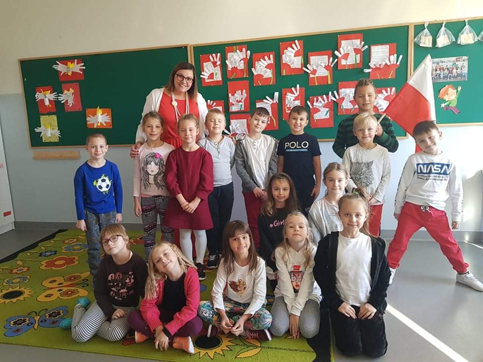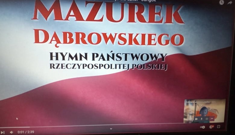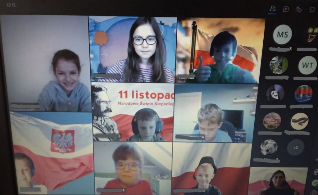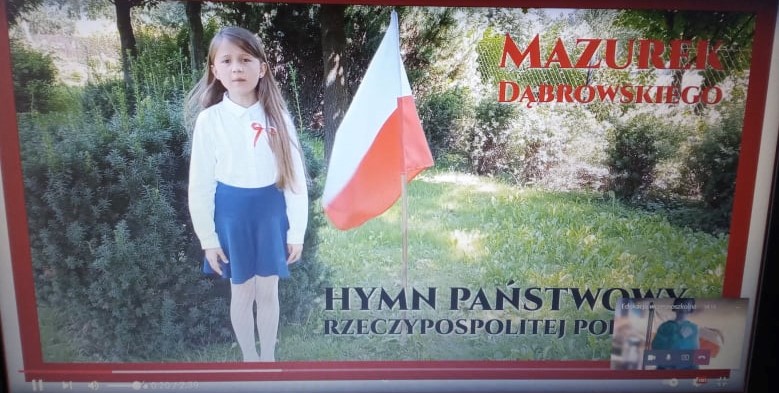 Uczniowie klasy 3A uczący się zdalnie również włączyli się w świętowanie 103. rocznicy Odzyskania przez Polskę Niepodległości. W czasie lekcji on-line uczniowie zapoznali się z rolą, jaką odegrał Patron naszej szkoły – Ignacy Jan Paderewski w walce o wolność polskiego narodu. W południe, wszyscy w postawie stojącej, odśpiewaliśmy Hymn Polski. Powagi i odświętnego nastroju dodały patriotyczne tła, przedstawiające polską flagę- jeden z symboli narodowych.