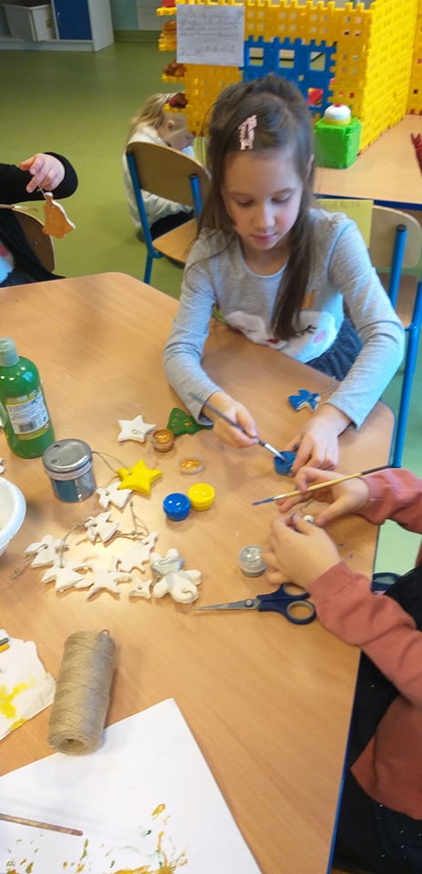 Świetlica szkolna uczestniczyła w Szkolnym Kiermaszu Świątecznym, który odbył się 15 grudnia 2021 r. w naszej szkole. Utalentowane i pracowite dzieci wraz z nauczycielami świetlicy przygotowały piękne dekoracje świąteczne: lampiony, bombki z masy solnej, kaszy gryczanej, stroiki.