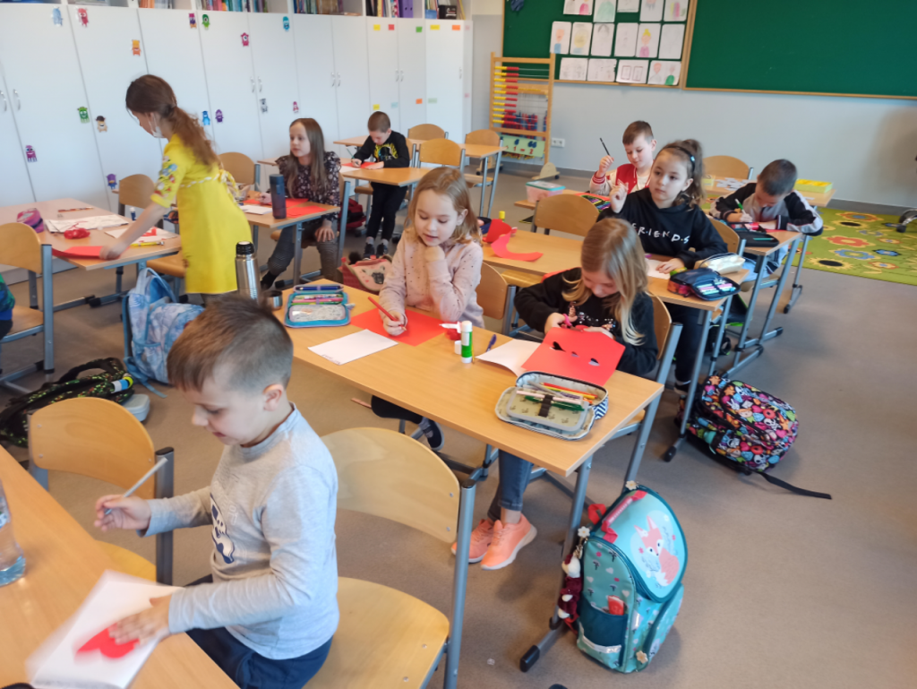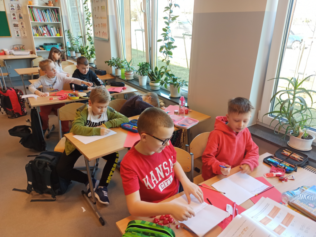 14 lutego 2022 r. uczniowie 1B rozmawiali o święcie walentynkowym. Z tej okazji tworzyli własne kartki i rozwiązywali quizy. Uczniowie i ich wychowawca – Pani Lidia dziękują rodzicom za słodkie serduszka, które umiliły powrót do szkolnej rzeczywistości. 😄