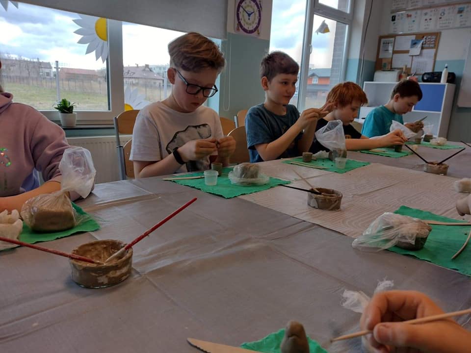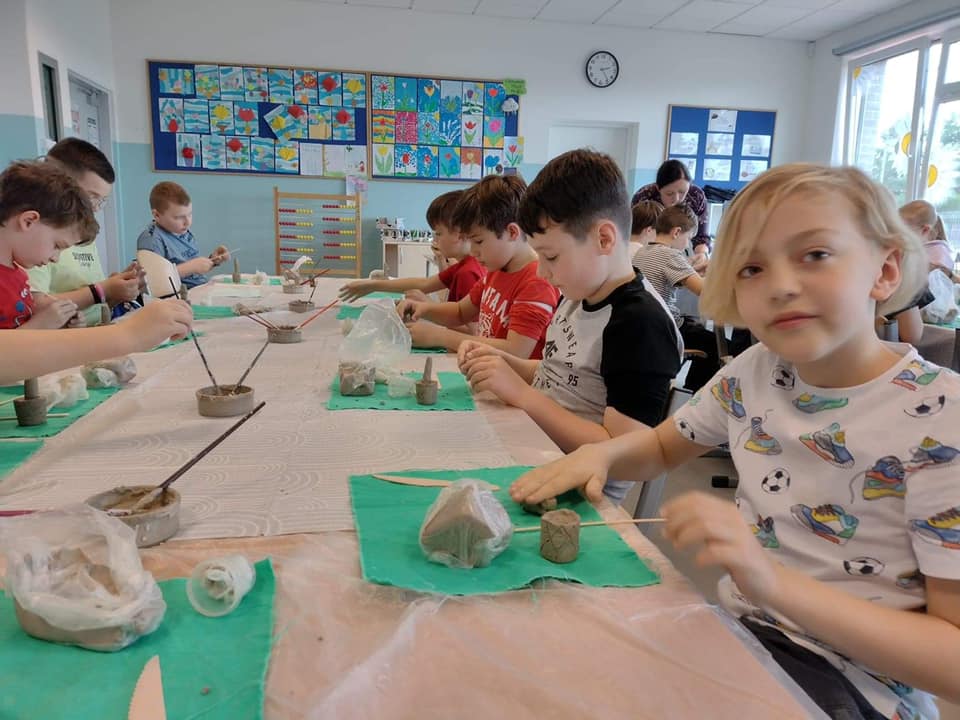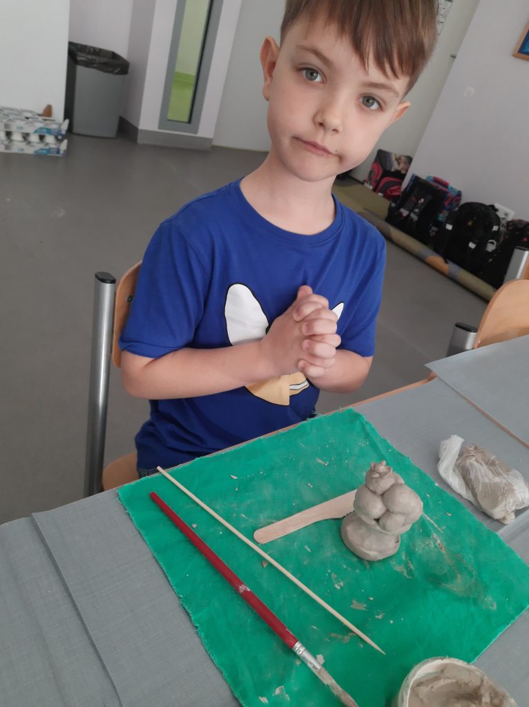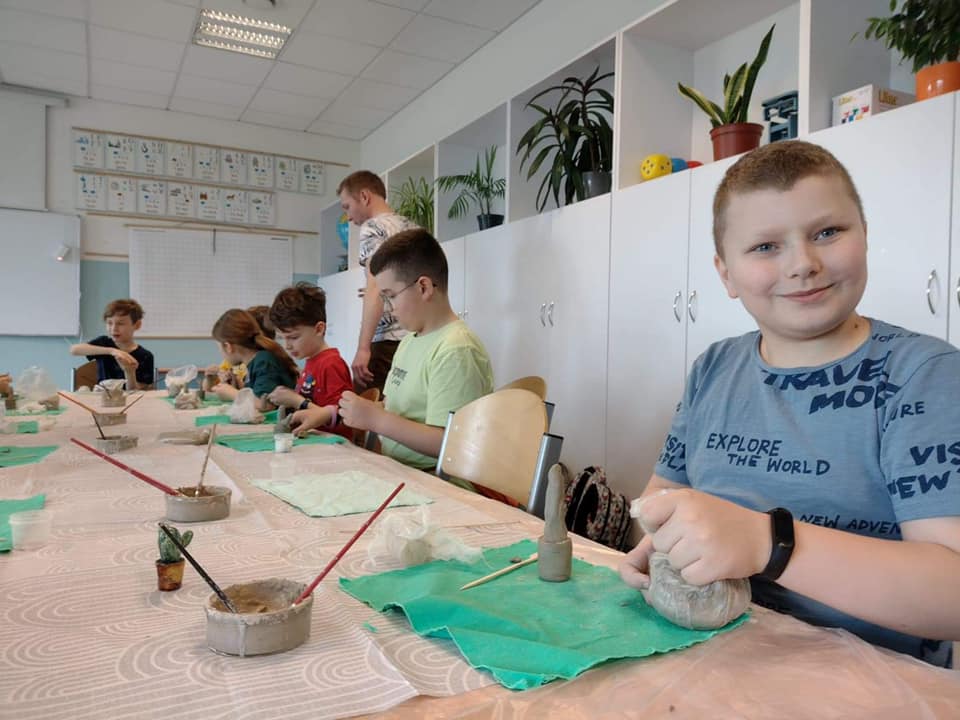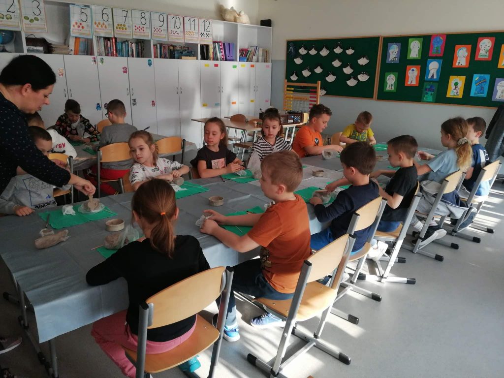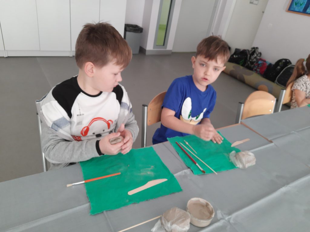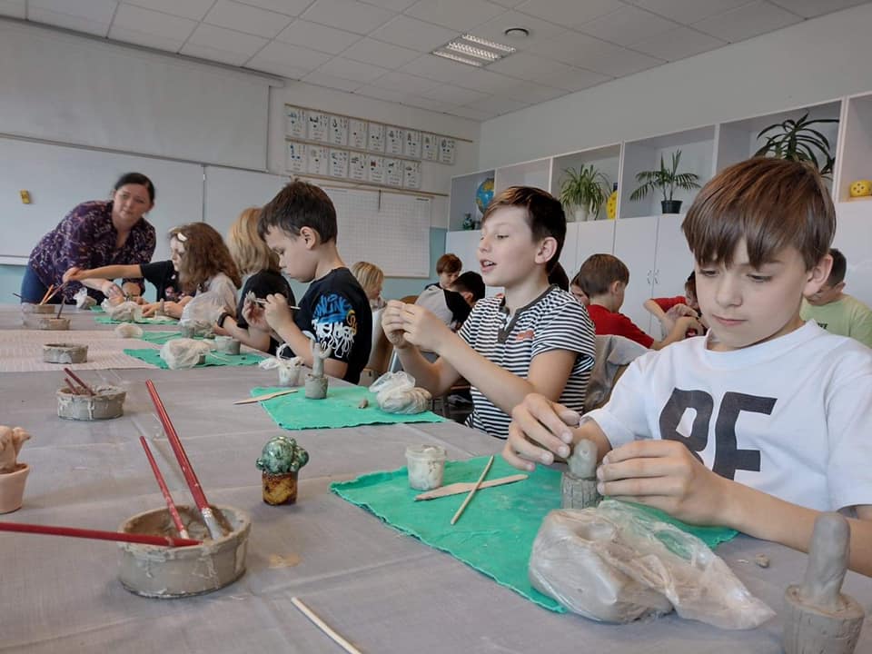 Uczniowie klas młodszych uczestniczyli w warsztatach ceramicznych. Podczas warsztatów ugniatali, lepili, formowali i ściskali glinę, tworząc wspaniałe dzieła sztuki. Kształtowali swoją wyobraźnię, wrażliwość artystyczną, zdolności manualne, ale przede wszystkim dobrze się bawili. Było to pierwsze z dwóch wspaniałych spotkań z gliną. Gdy prace zostaną wypalone, spotkamy się ponownie, by je pomalować.