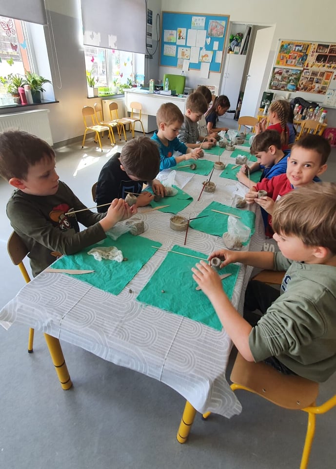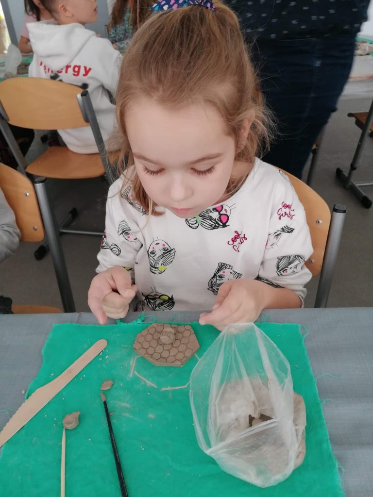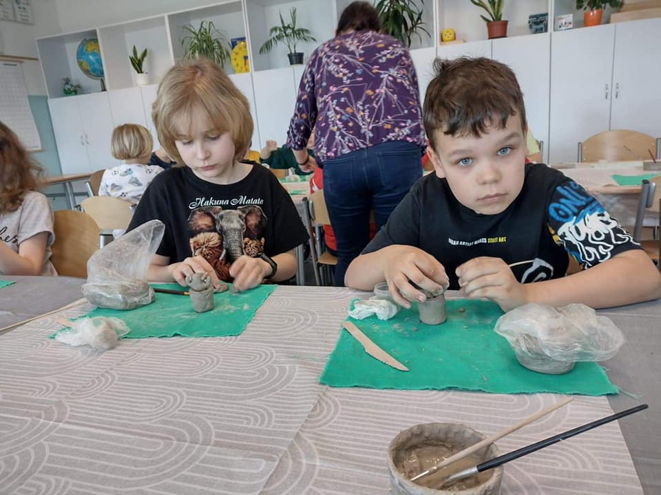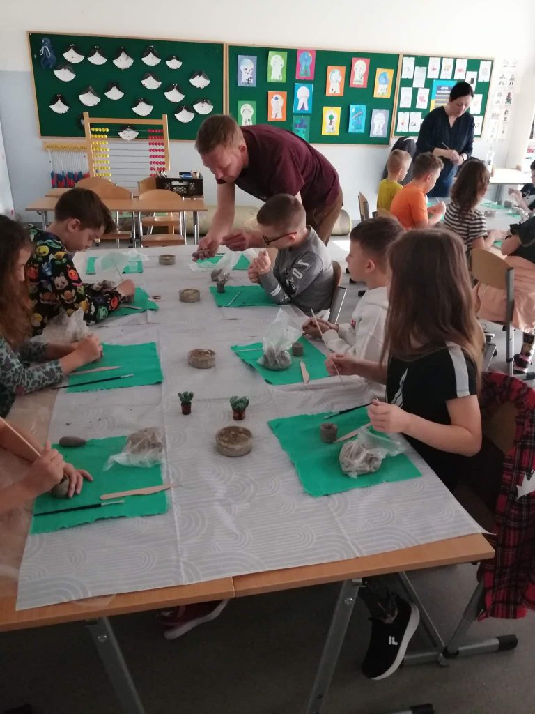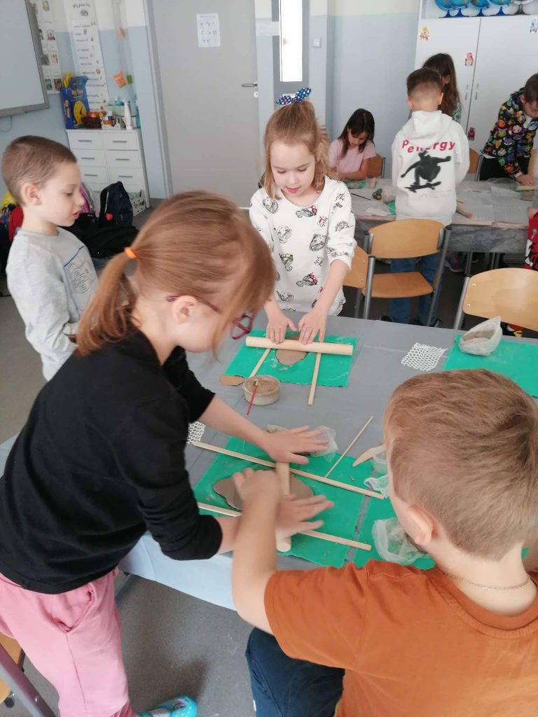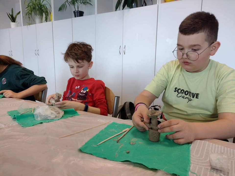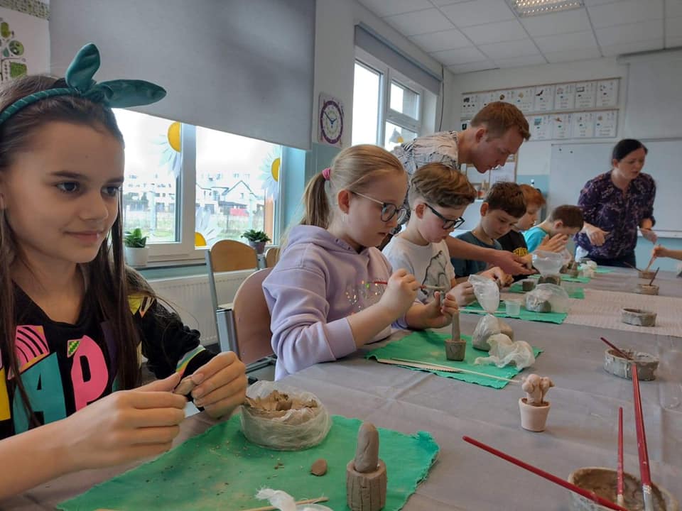 Uczniowie klas młodszych uczestniczyli w warsztatach ceramicznych. Podczas warsztatów ugniatali, lepili, formowali i ściskali glinę, tworząc wspaniałe dzieła sztuki. Kształtowali swoją wyobraźnię, wrażliwość artystyczną, zdolności manualne, ale przede wszystkim dobrze się bawili. Było to pierwsze z dwóch wspaniałych spotkań z gliną. Gdy prace zostaną wypalone, spotkamy się ponownie, by je pomalować.