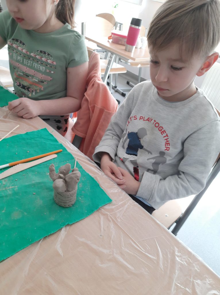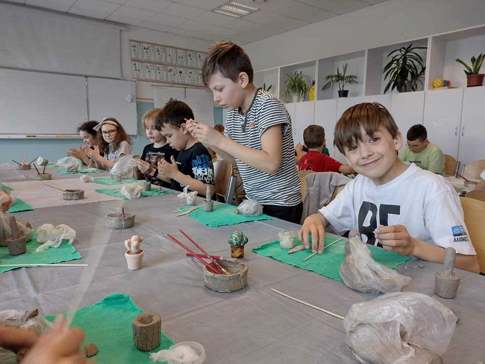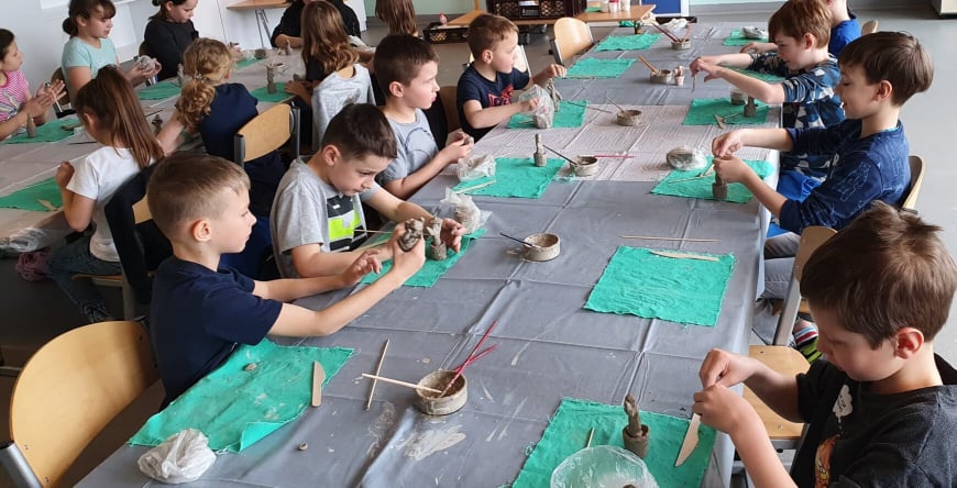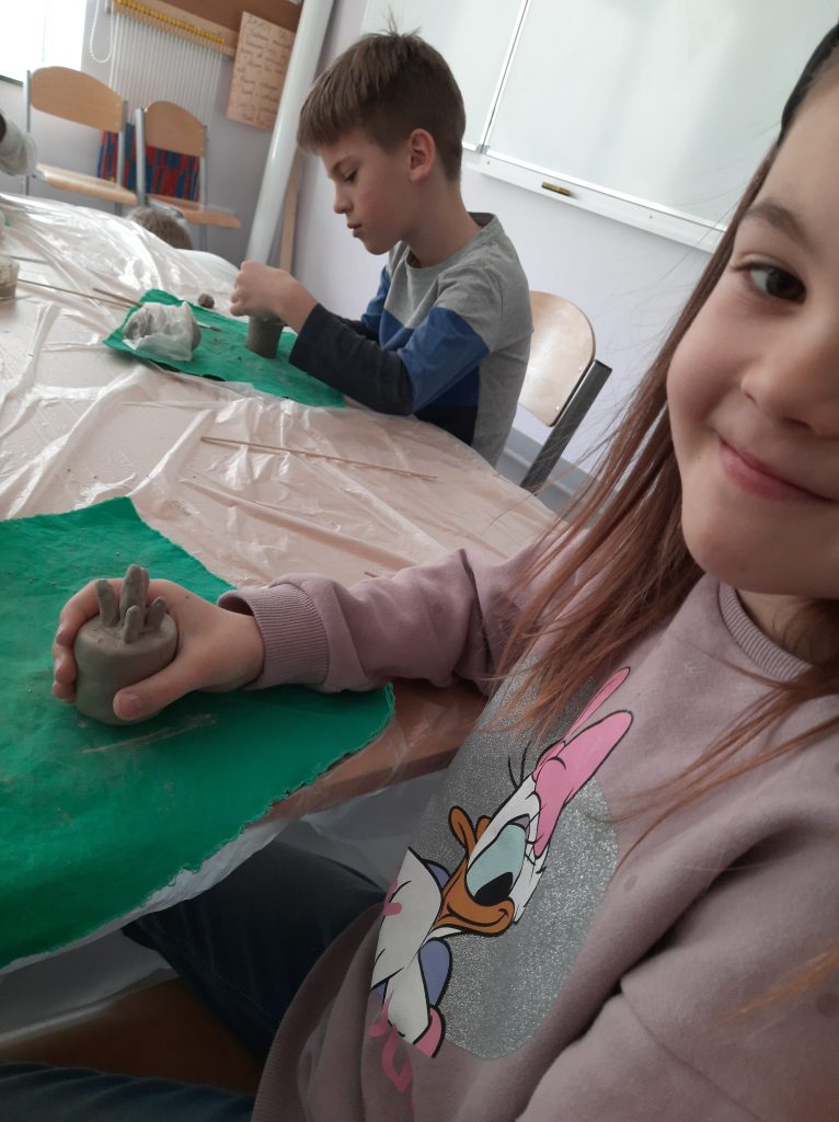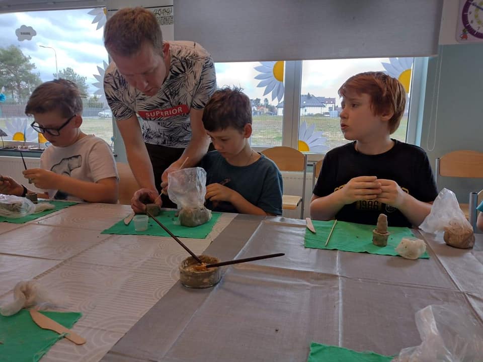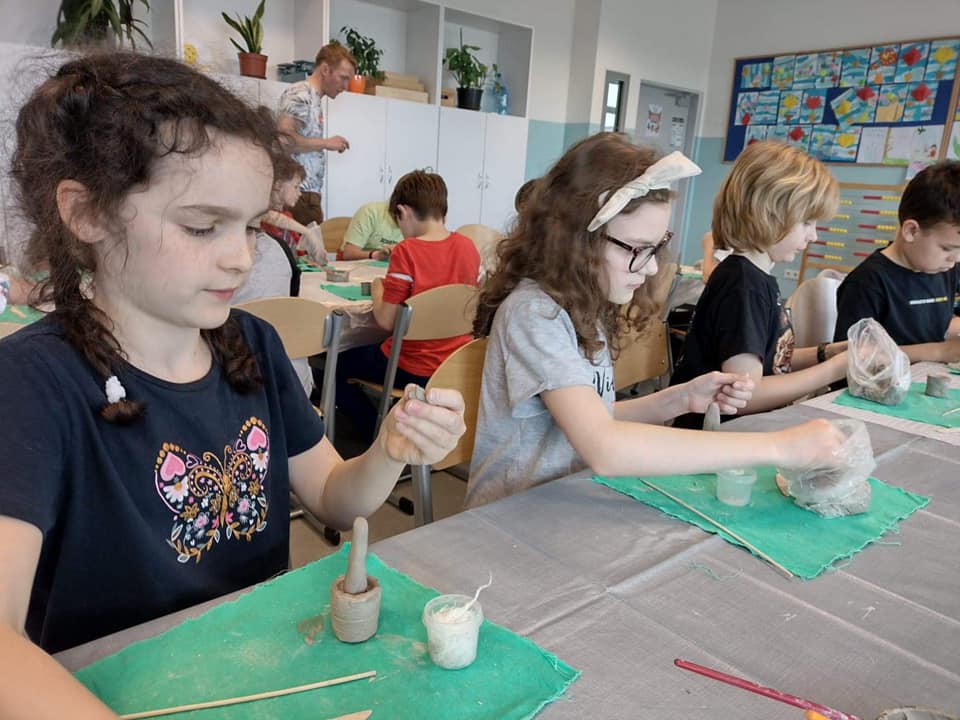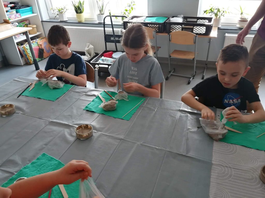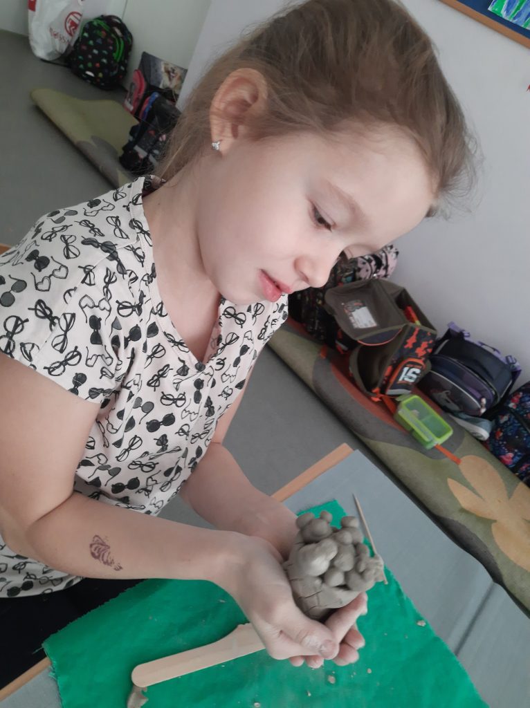 Uczniowie klas młodszych uczestniczyli w warsztatach ceramicznych. Podczas warsztatów ugniatali, lepili, formowali i ściskali glinę, tworząc wspaniałe dzieła sztuki. Kształtowali swoją wyobraźnię, wrażliwość artystyczną, zdolności manualne, ale przede wszystkim dobrze się bawili. Było to pierwsze z dwóch wspaniałych spotkań z gliną. Gdy prace zostaną wypalone, spotkamy się ponownie, by je pomalować.