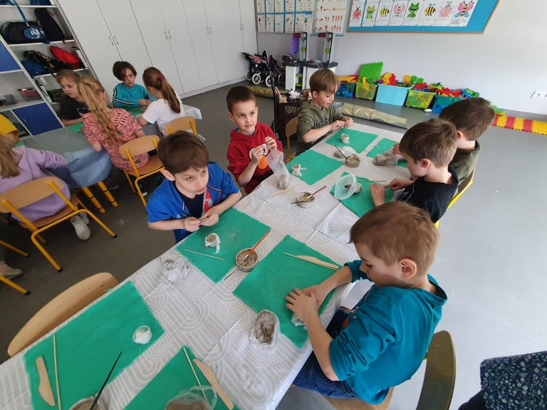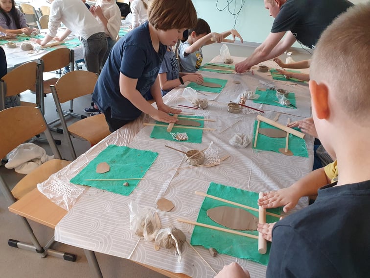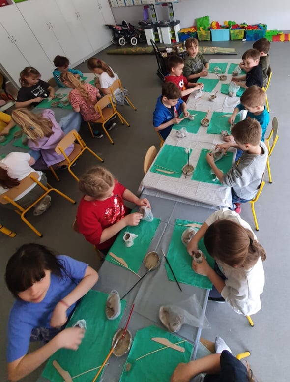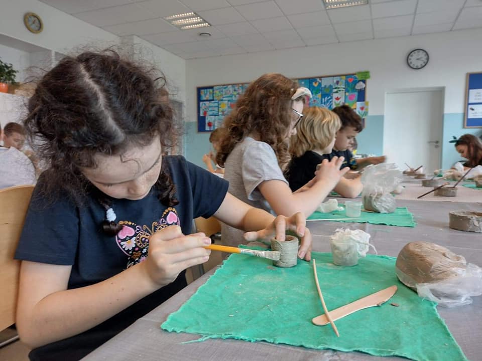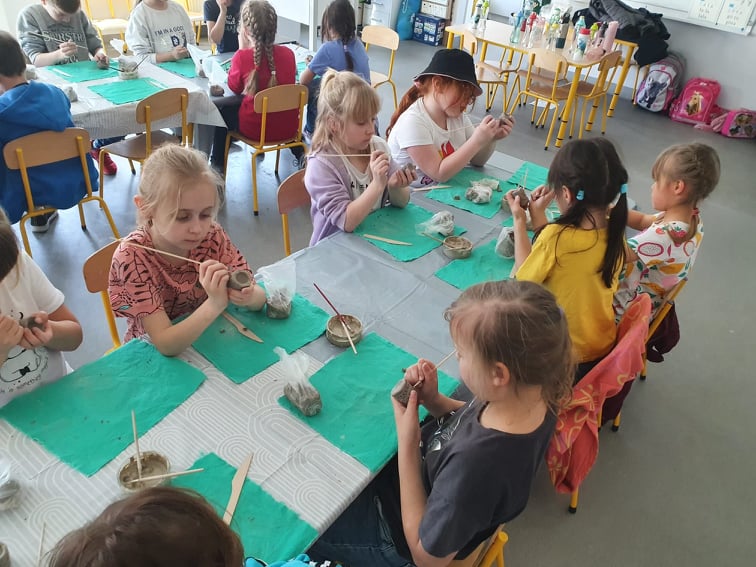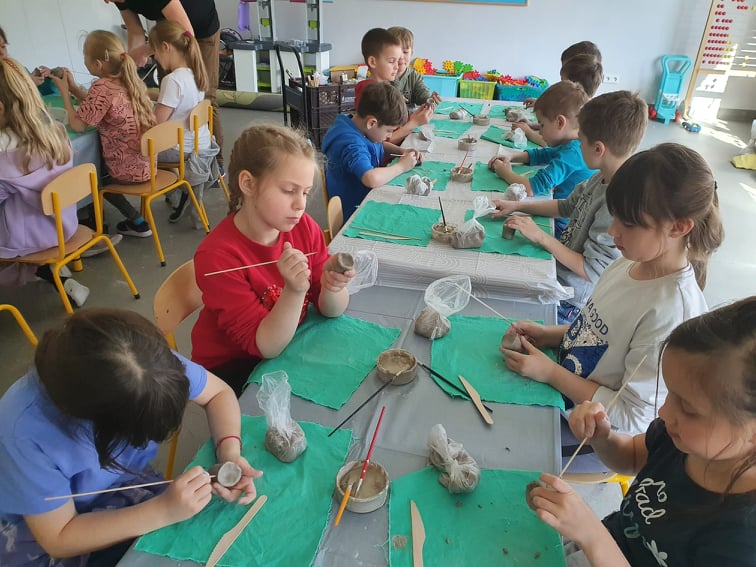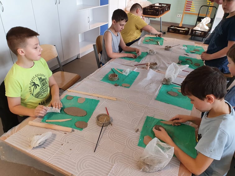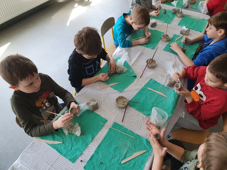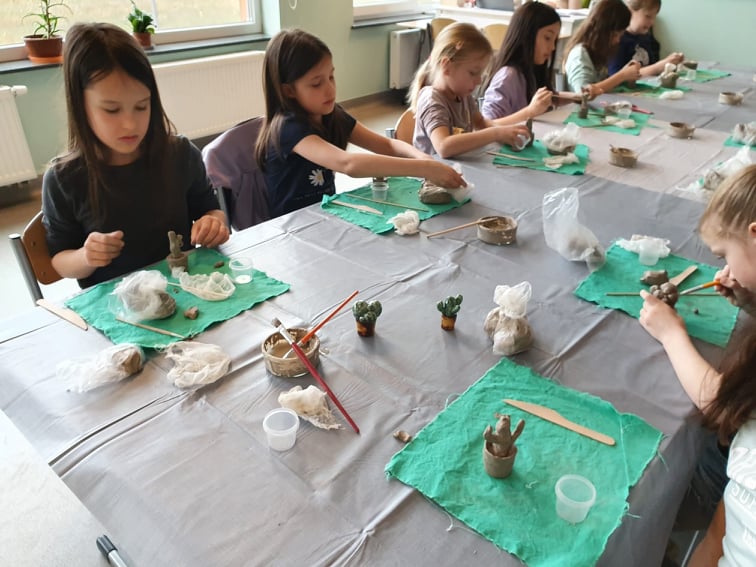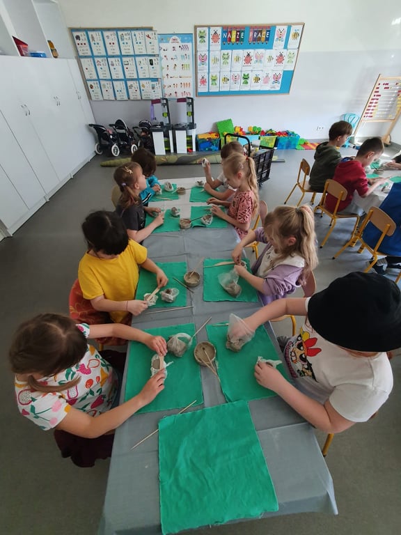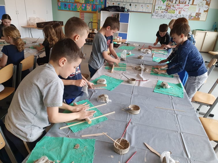 Uczniowie klas młodszych uczestniczyli w warsztatach ceramicznych. Podczas warsztatów ugniatali, lepili, formowali i ściskali glinę, tworząc wspaniałe dzieła sztuki. Kształtowali swoją wyobraźnię, wrażliwość artystyczną, zdolności manualne, ale przede wszystkim dobrze się bawili. Było to pierwsze z dwóch wspaniałych spotkań z gliną. Gdy prace zostaną wypalone, spotkamy się ponownie, by je pomalować.