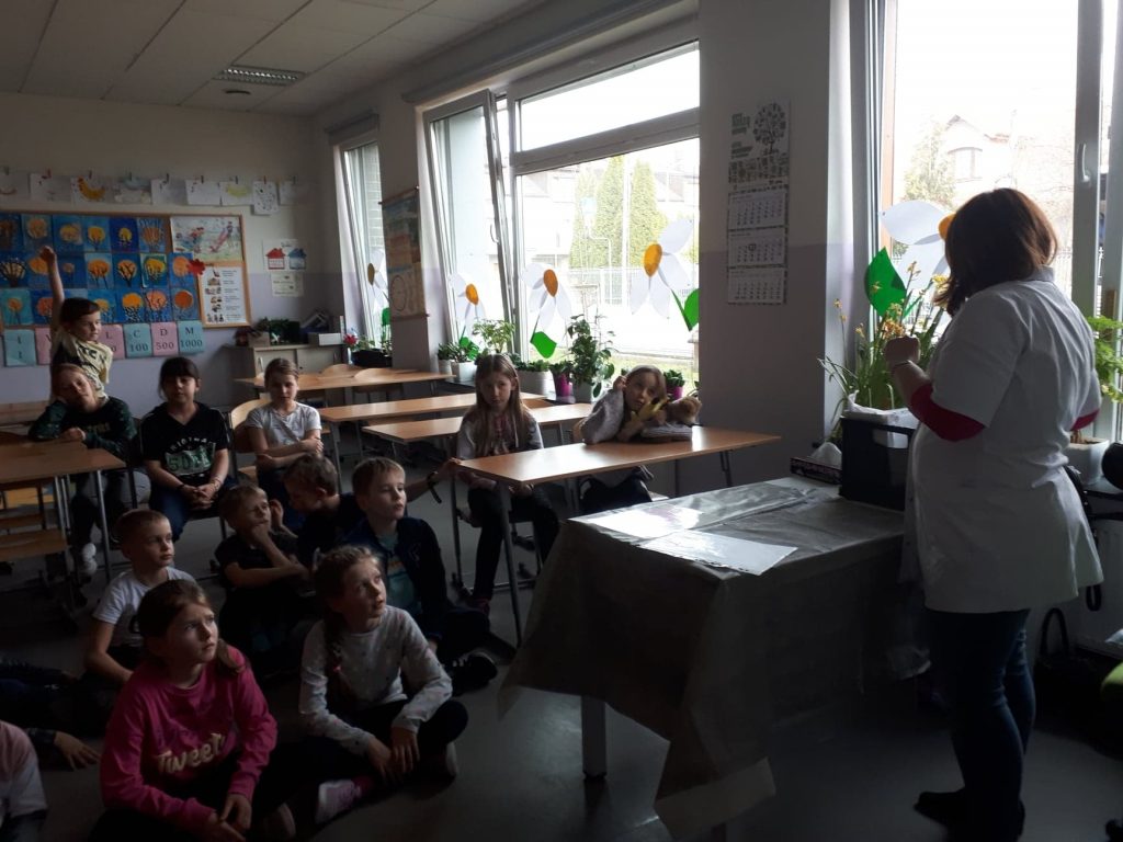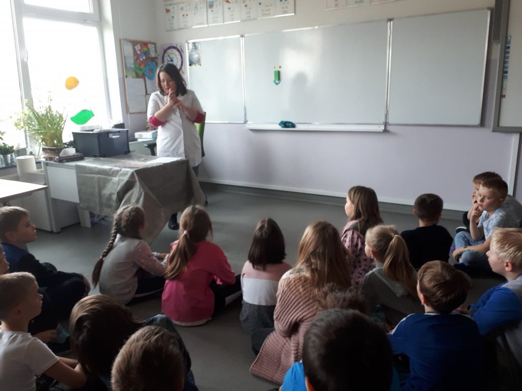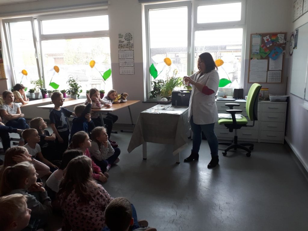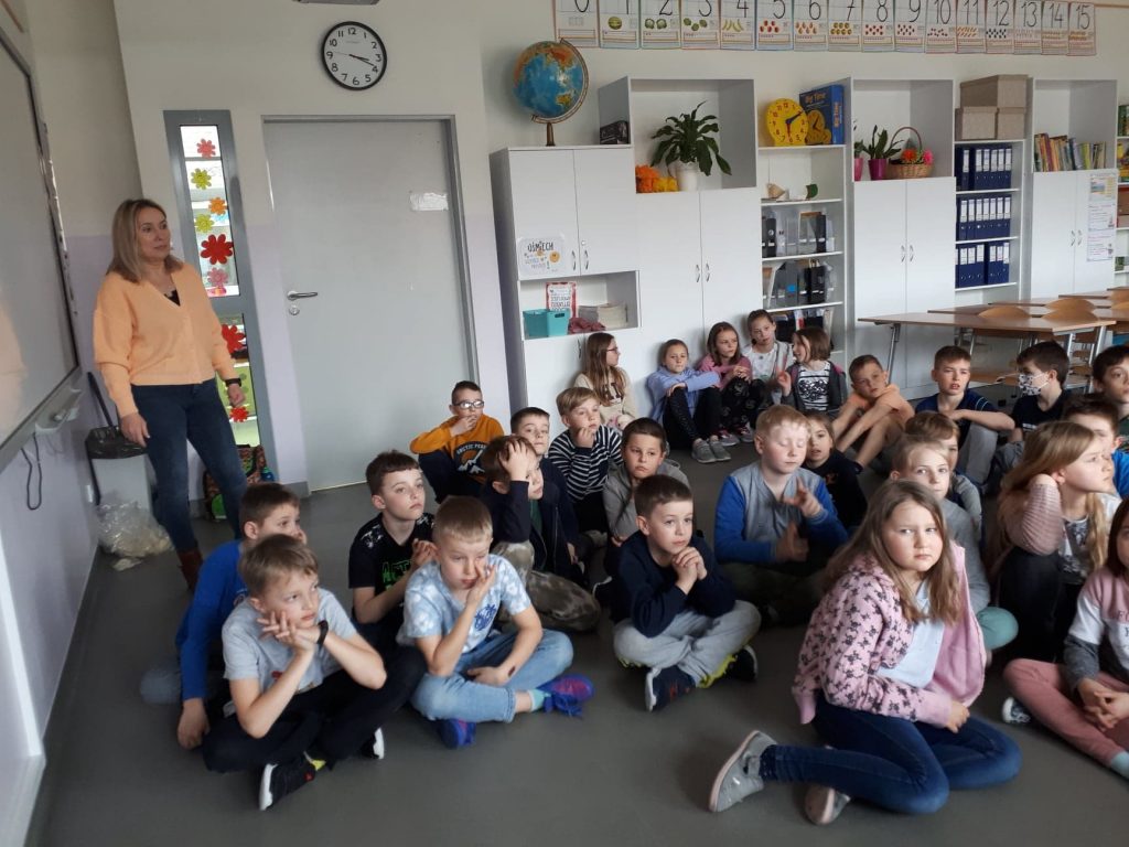 Dnia 05 kwietnia 2022 r. Koło Podróżnika, czyli uczniowie w składzie klasa 3C i 2D, uczestniczyli w warsztatach pt.: „naukowe zabawy z jajkiem”.