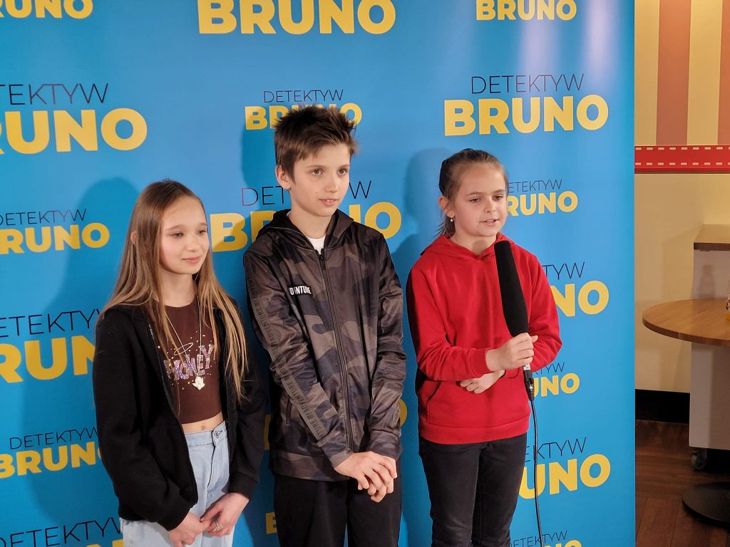 12 kwietnia 2022 r. uczniowie klas 1C i 4B wybrali się na specjalny przedpremierowy pokaz filmu „Detektyw Bruno”. Seans był wyjątkowy, bo z udziałem młodych aktorów, którzy zagrali dwie główne dziecięce rolę (Martyna Woźniak i Iwo Rajski). Mieliśmy również okazję zrelacjonować na gorąco wrażenia po filmie. Premiera filmu dopiero w maju, ale już dziś polecamy dla dorosłych i dzieci.