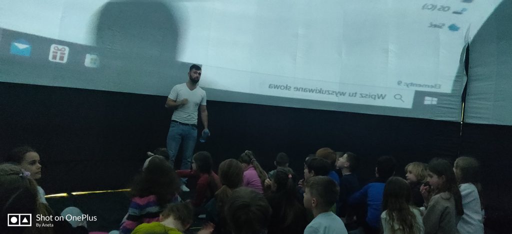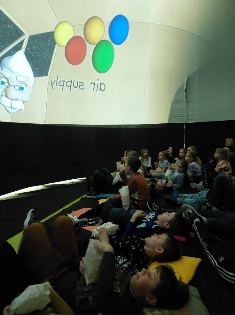 Uczniowie klas 0-3 uczestniczyli dziś w pokazach filmowych prezentowanych w mobilnym planetarium goszczącym w naszej szkole. Było dużo wrażeń, emocji i ciekawych informacji.