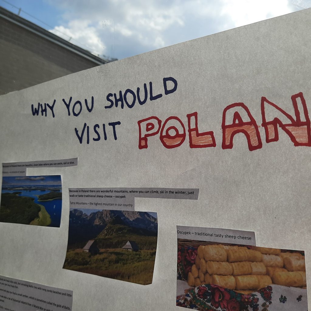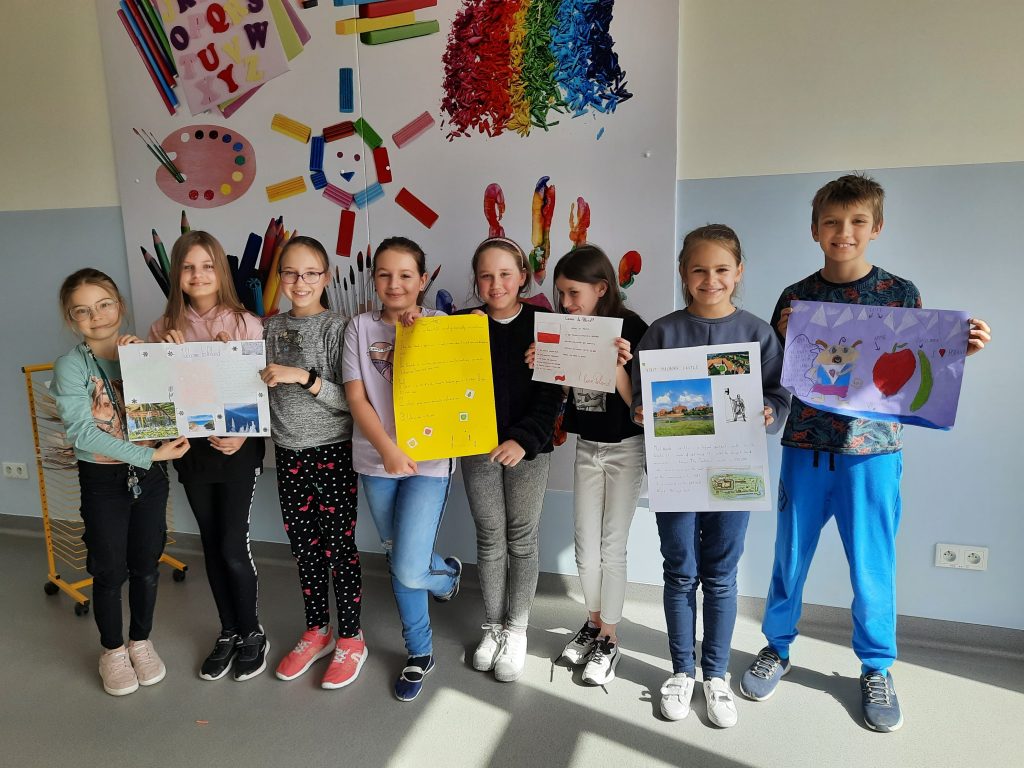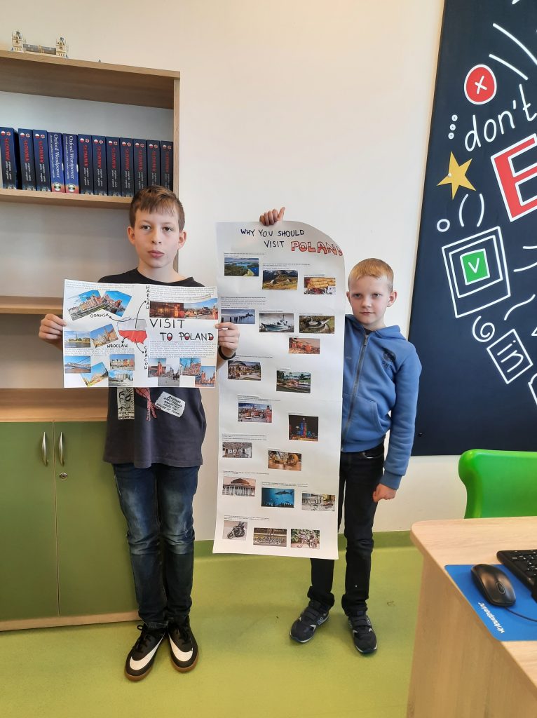 Uczniowie klas 4A i 4B wzięli udział w projekcie językowym pt. „Come to Poland”. Celem projektu było uświadomienie uczniom, jak pięknym i niezwykłym krajem jest Polska, pokazanie interesujących miejsc wartych zobaczenia oraz zachęcenie uczniów do poszerzania znajomości języka angielskiego. Uczniowie przygotowali ciekawe i różnorodne prace, które następnie prezentowali w języku angielskim. Prace te można obejrzeć w holu na pierwszym piętrze naszej szkoły.
