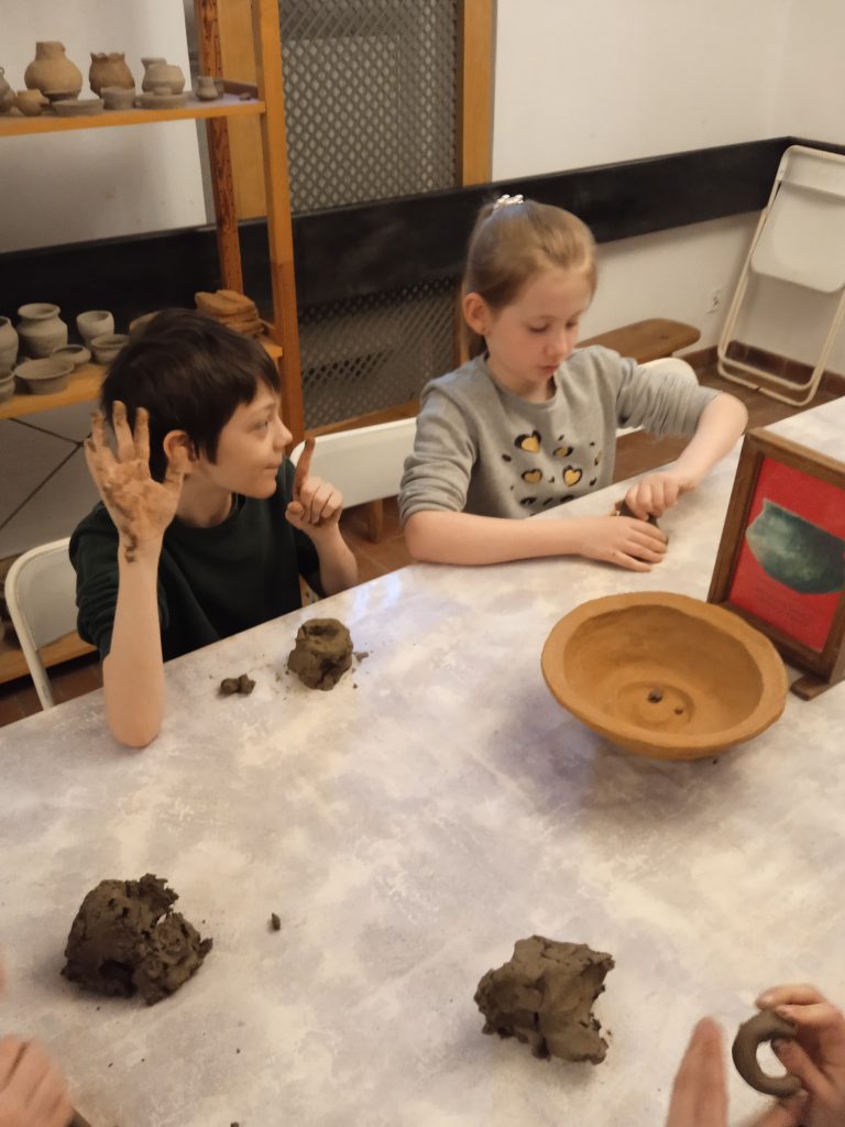 29 kwietnia 2022 r. klasa 3C była na wycieczce w Muzeum Starożytnego Hutnictwa Mazowieckiego w Pruszkowie. Uczniowie zwiedzili wystawę dotyczącą życia ludzi sprzed dwóch tysięcy lat na terenach, na których obecnie mieszkamy. Dowiedzieli się co to są dymarki i jak je budowano, jak wytapiano żelazo i do czego było ono potrzebne. Następnie uczestniczyli w warsztatach lepienia z gliny. Wykonali piękne miski, dzbanki i kubki.