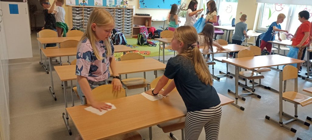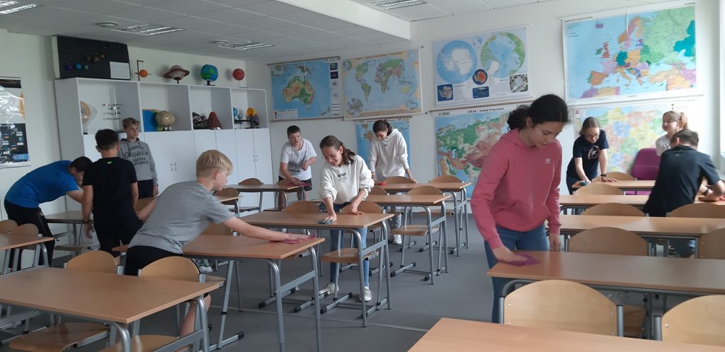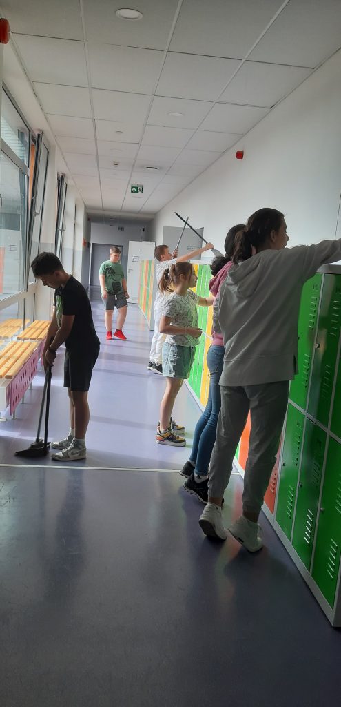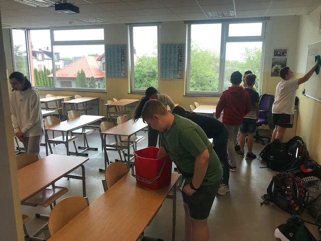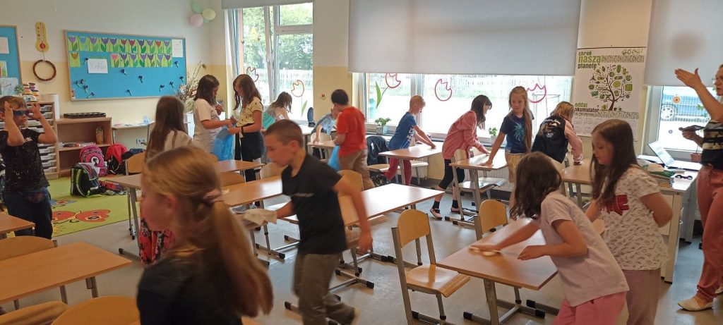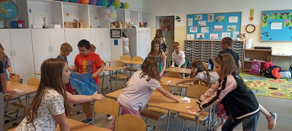 11 maja 2022 r. uczniowie SP5 obchodzili „Dzień bez śmiecenia”. Podczas lekcji uczniowie sprzątali sale lekcyjne, wnętrze szkoły oraz jej otoczenie. Był to czas kierujący uwagę zarówno młodszych jak i starszych uczniów na potrzebę dbania o czystość w miejscu, w którym spędzamy dużo czasu.