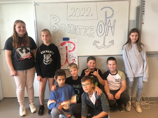 Uczniowie klas 4 i 5 w ramach ogólnopolskiej akcji BohaterON upamiętnili bohaterów Powstania Warszawskiego. Podczas zajęć uczniowie przygotowali pamiątkowy mural oraz dowiedzieli się m.in.: dlaczego wybuchło powstanie, o bohaterstwie walczących Polaków oraz jak długo trwały walki.