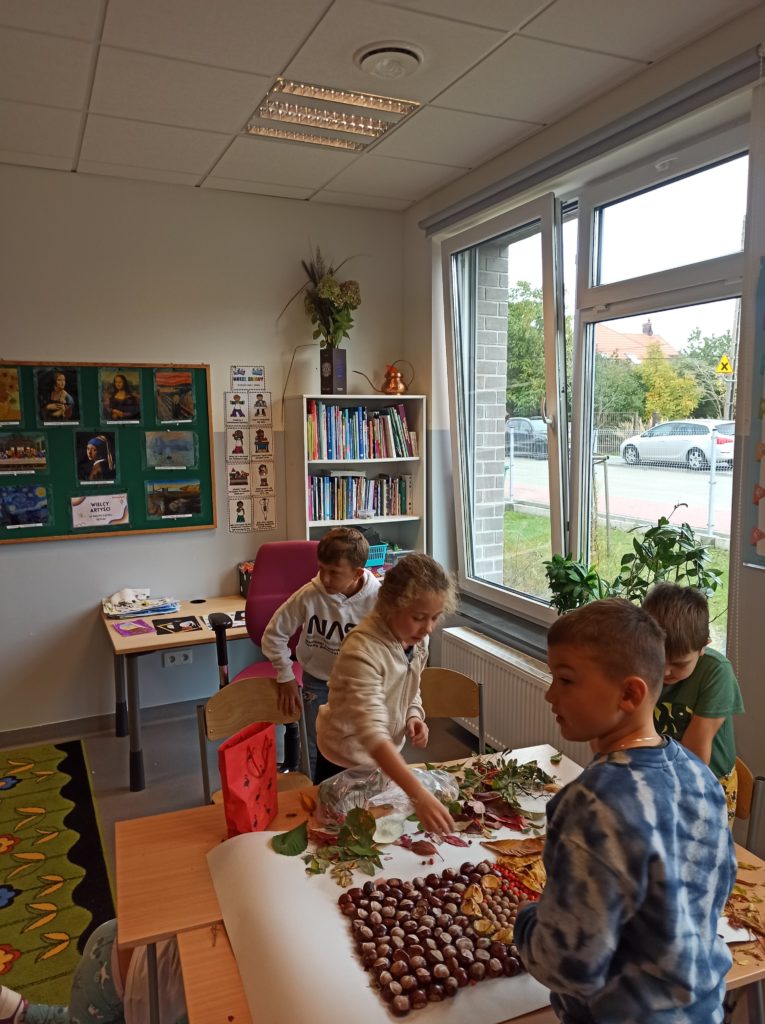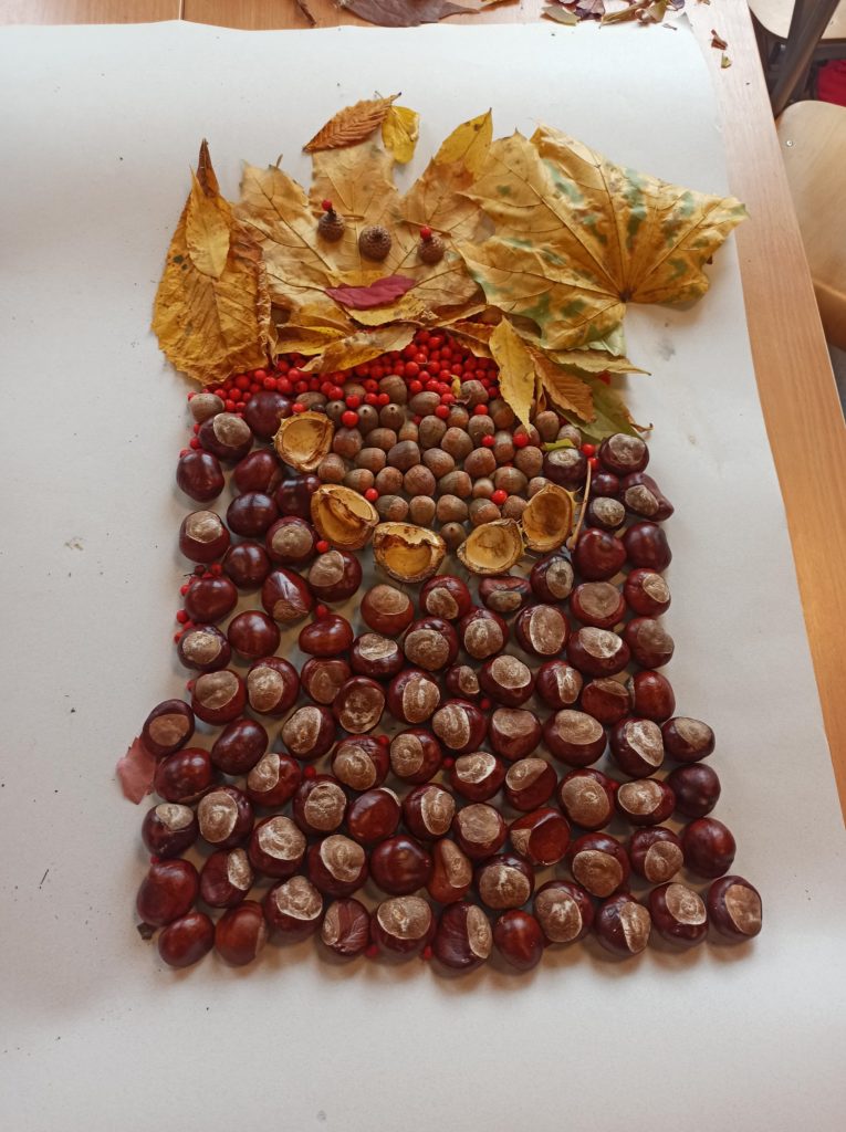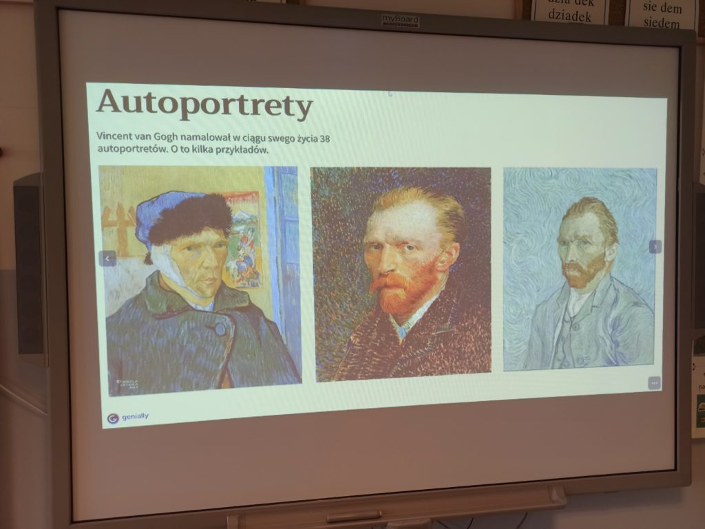 Uczniowie klasy 2B w ramach projektu edukacyjnego „Zabawy sztuką” poznali dziewięć najpopularniejszych obrazów w historii sztuki. Zdjęcia obrazów zagościły na gazetce klasowej. Na początek skupiliśmy się na postaci i twórczości Vincentego van Gogha. Uczniowie dowiedzieli się kilku ciekawostek na temat jego życia. Obejrzeli 3 z 38 autoportretów i na ich podstawie stworzyli swe dzieła z darów jesieni: „Portret wielkiego van Gogha bez ucha”. Wykazali się niezwykłą kreatywnością.