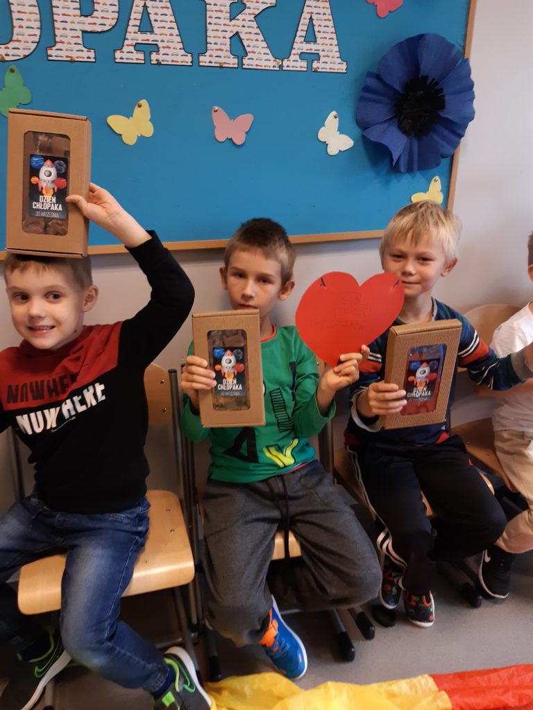 Dziś dziewczęta z SP5 uczciły Dzień Chłopaka, wręczając swoim kolegom z klasy upominki, organizując konkursy oraz przygotowując słodkie poczęstunki.