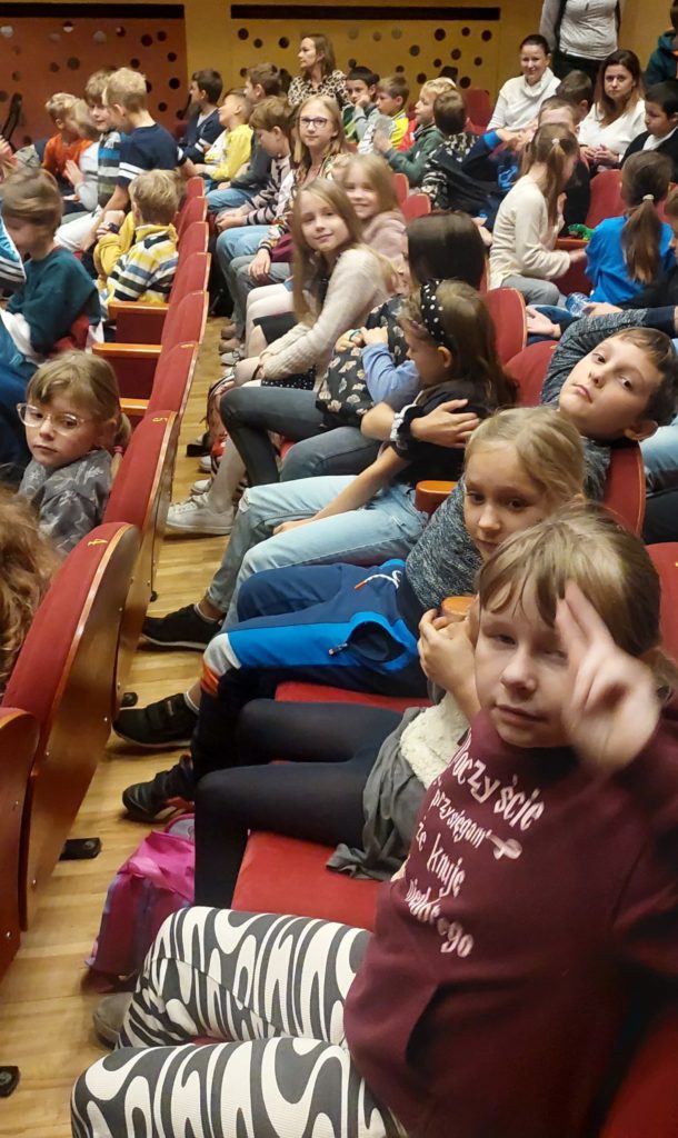30 września br., uczniowie klas 3B i 3E odwiedzili Teatr Guliwer i oglądali interaktywne przedstawienie „Amelka, bóbr i król na dachu”. Słynny niemiecki dramaturg skorzystał ze znanych bajkowych motywów, by na nowo, nieco ironicznie opowiedzieć historię porwanej księżniczki. W tej dowcipnej, a nade wszystko poetyckiej zabawie skojarzeniami odnajdujemy uniwersalne prawdy, że trzeba być dobrym, by dobro zwyciężyło. Wspaniałe przedstawienie teatralne przeniosło dzieci w świat fantazji, gdzie wszystko jest możliwe.