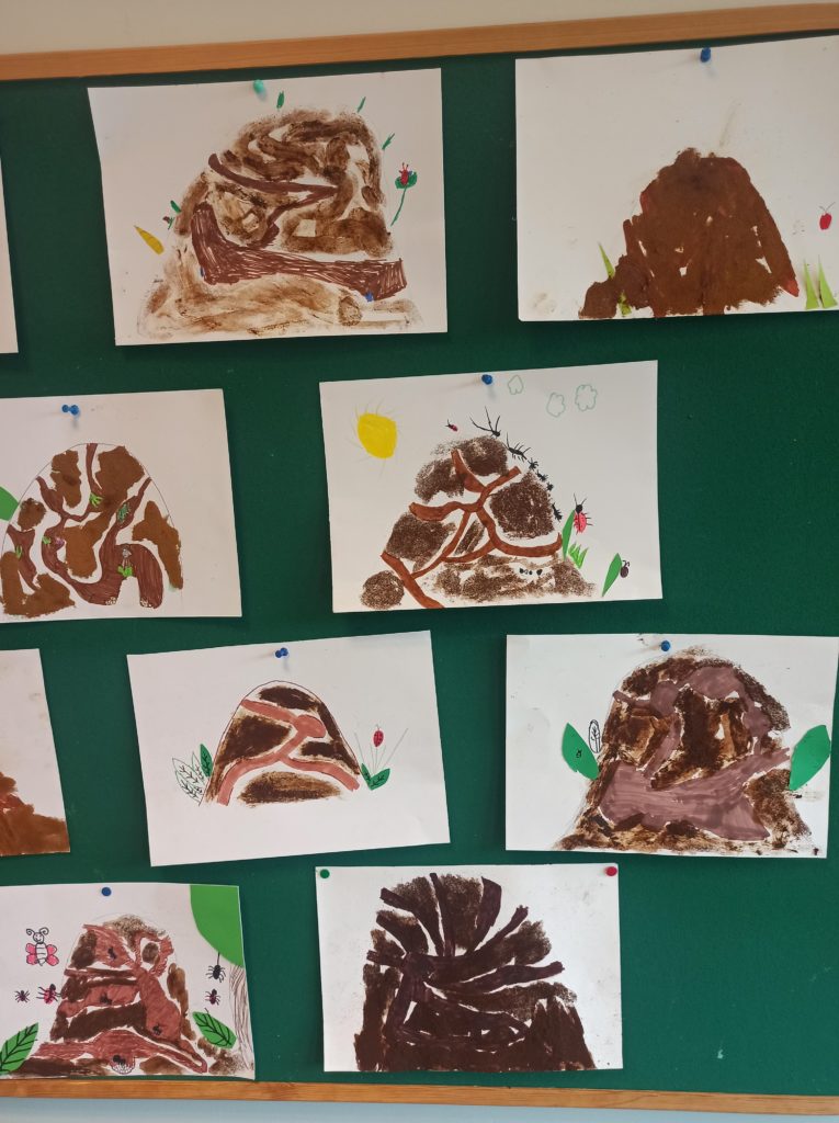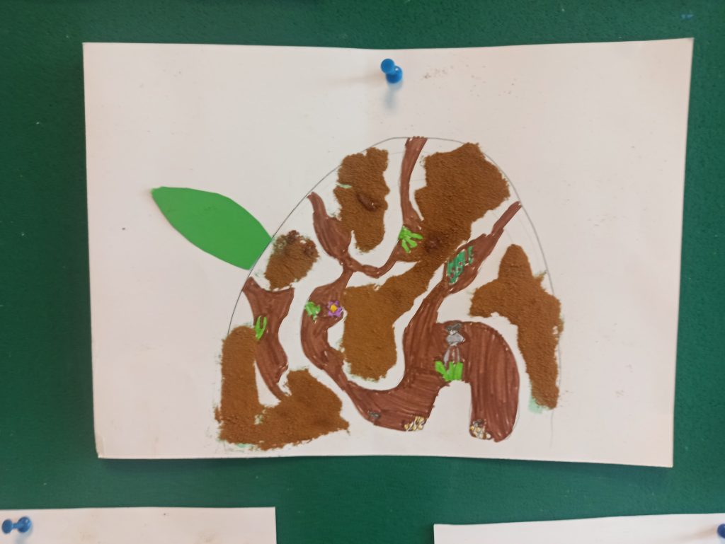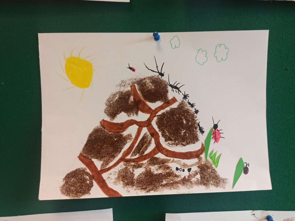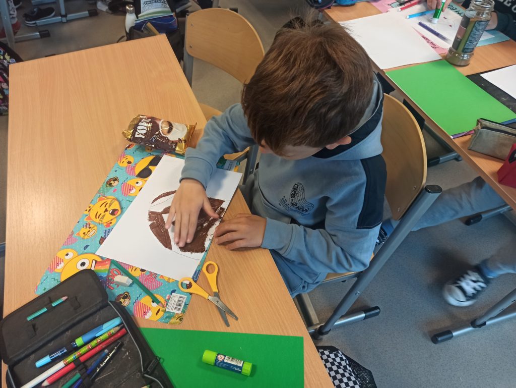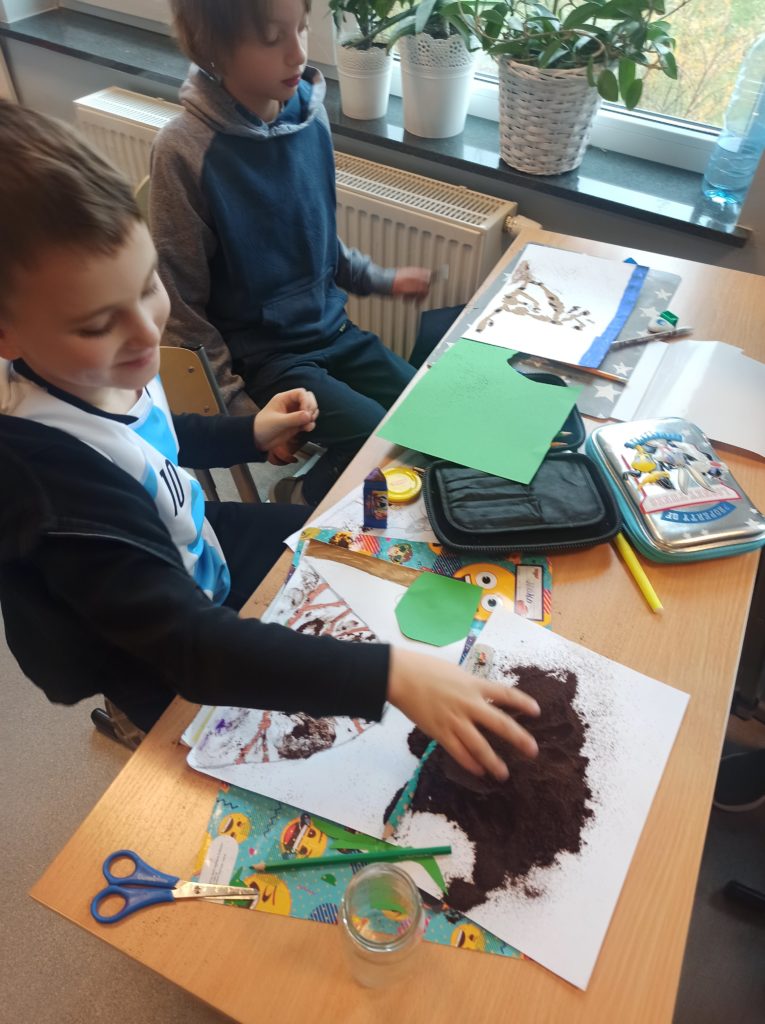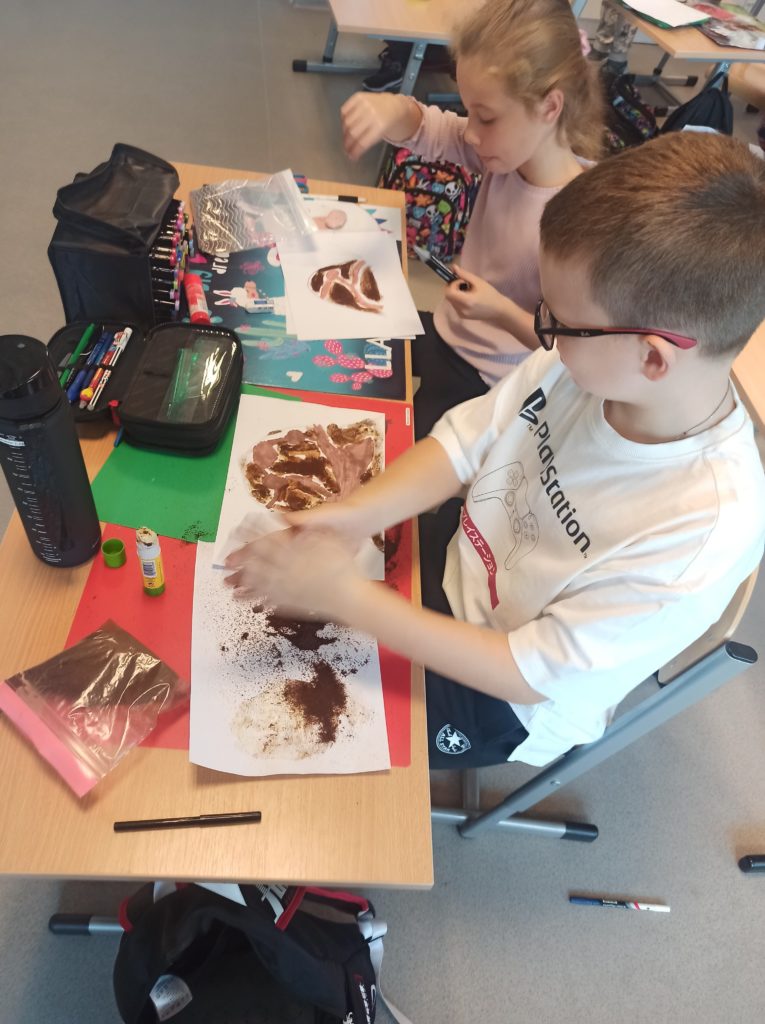 W ramach projektu „Zabawy sztuką” uczniowie klasy 2B wykonali pachnące mrowiska. Użyli zamiast typowych akcesoriów malarskich – kawy. Wartością dodaną okazał się przepiękny zapach, który roztaczał się w klasie podczas pracy twórczej uczniów.
