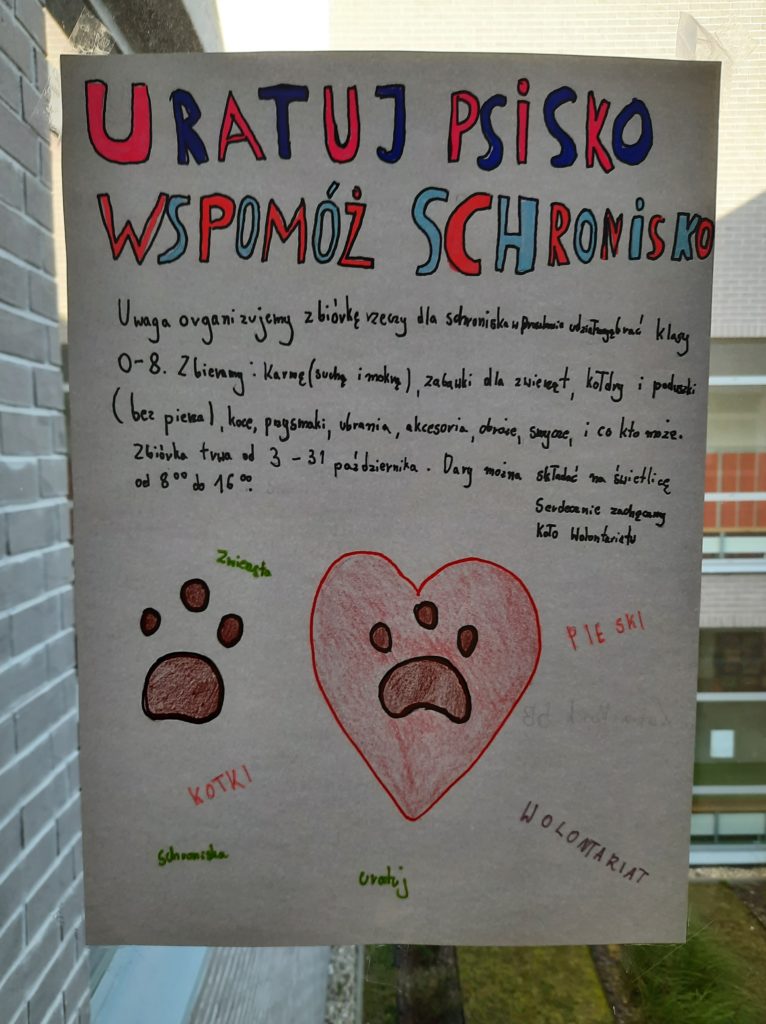 W naszej szkole rozpoczęła się akcja „Zwierzakom pomagamy, bo je bardzo kochamy”.