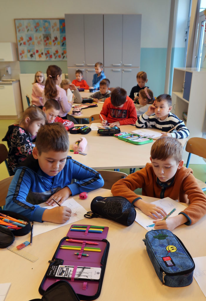 W świetlicy szkolnej odbyły się zajęcia kółka plastycznego z cyklu „Uczę się rysować”. Spotkania mają pomagać uczniom w zdobywaniu umiejętności rysowania. Uczniowie krok po kroku poznają wskazówki jak narysować rozmaite zwierzęta, rośliny, pojazdy, przedmioty czy postacie. Dzięki zajęciom samodzielne rysowanie stanie się prostsze i przyjemniejsze.