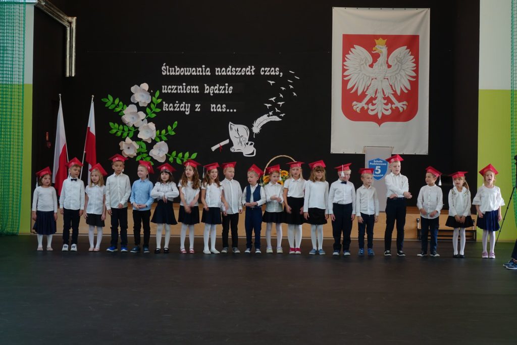 13 października 2022 r. społeczność szkolna SP5 przyjęła kolejnych pierwszoklasistów do grona uczniów. Najmłodsi uczniowie w obecności Pani Dyrektor, wychowawców i rodziców złożyli uroczyste ślubowanie na sztandar szkoły. Dzieci zaprezentowały wiersze i piosenki, a po odśpiewaniu hymnu Pani Dyrektor Aneta Pawłowska życzyła dzieciom i rodzicom, aby pobyt w szkole był niezapomnianym czasem nauki i nawiązywania przyjaźni.